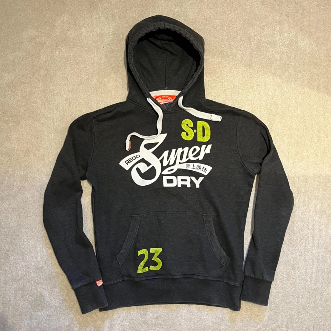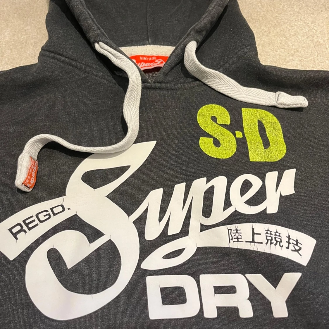Säljer en svart hoodie från Superdry med vit och grön text på framsidan. Trycket är lite sprucket men tycker bara det gör att den blir fetare. Vid minsta fråga eller fundering hör av er🤝