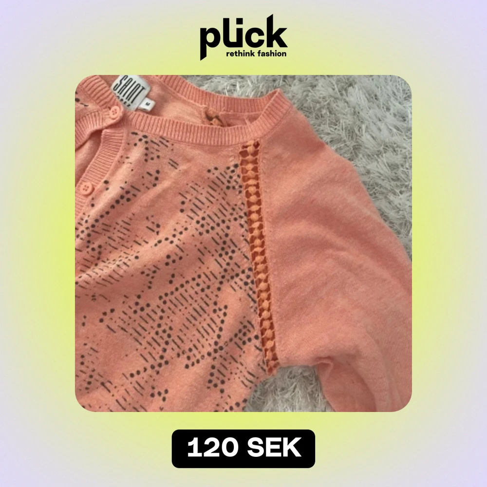 såå söt aprikosfärgad kofta från saint tropez !! tröjan är i storlek m men sitter som en s/xs 💕 tycker den har jättefina detaljer o är i jättebra skick, använd ca 3 gånger