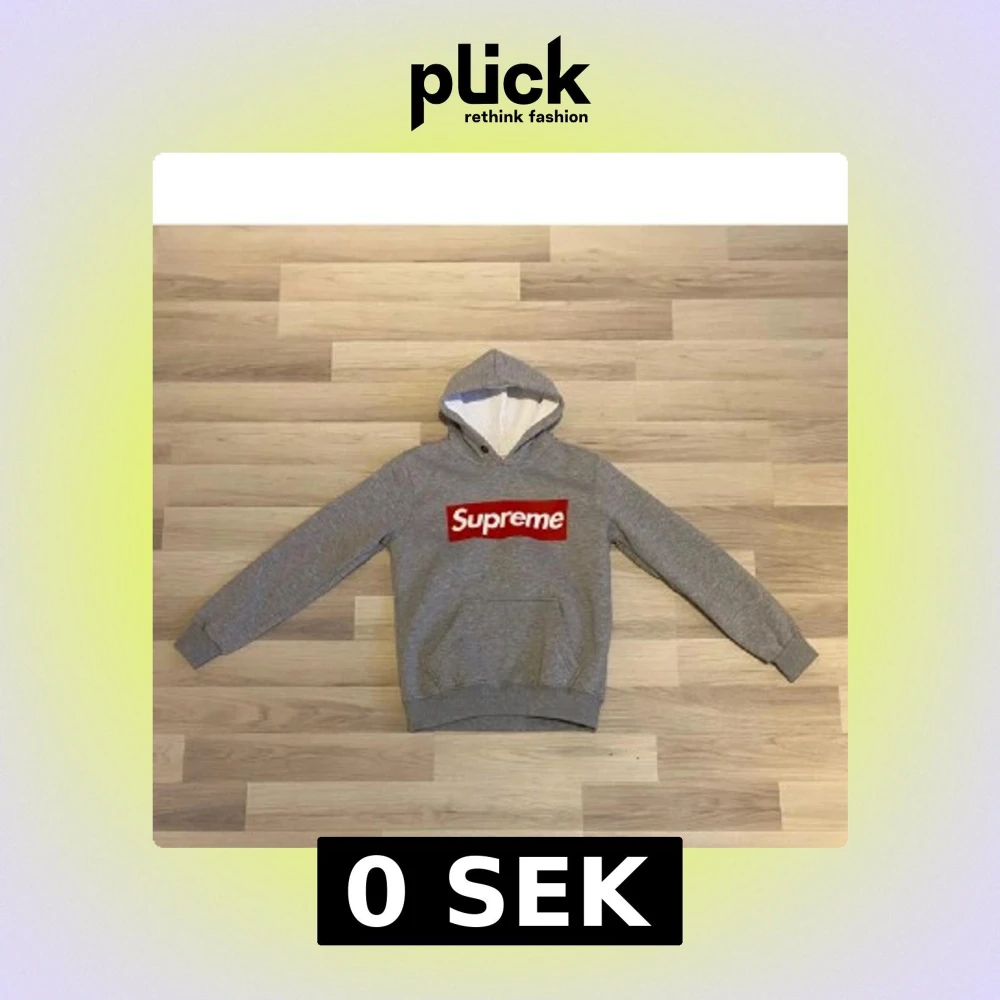 GE OFFER. DEN E L FAST PASSAR M Supreme hoodie i grått med den klassiska röda boxloggan framtill. Tröjan har huva med vit insida, magficka och ribbade muddar vid ärmar och nederkant. Perfekt för dig som gillar streetwear och vill sticka ut med en ikonisk look.