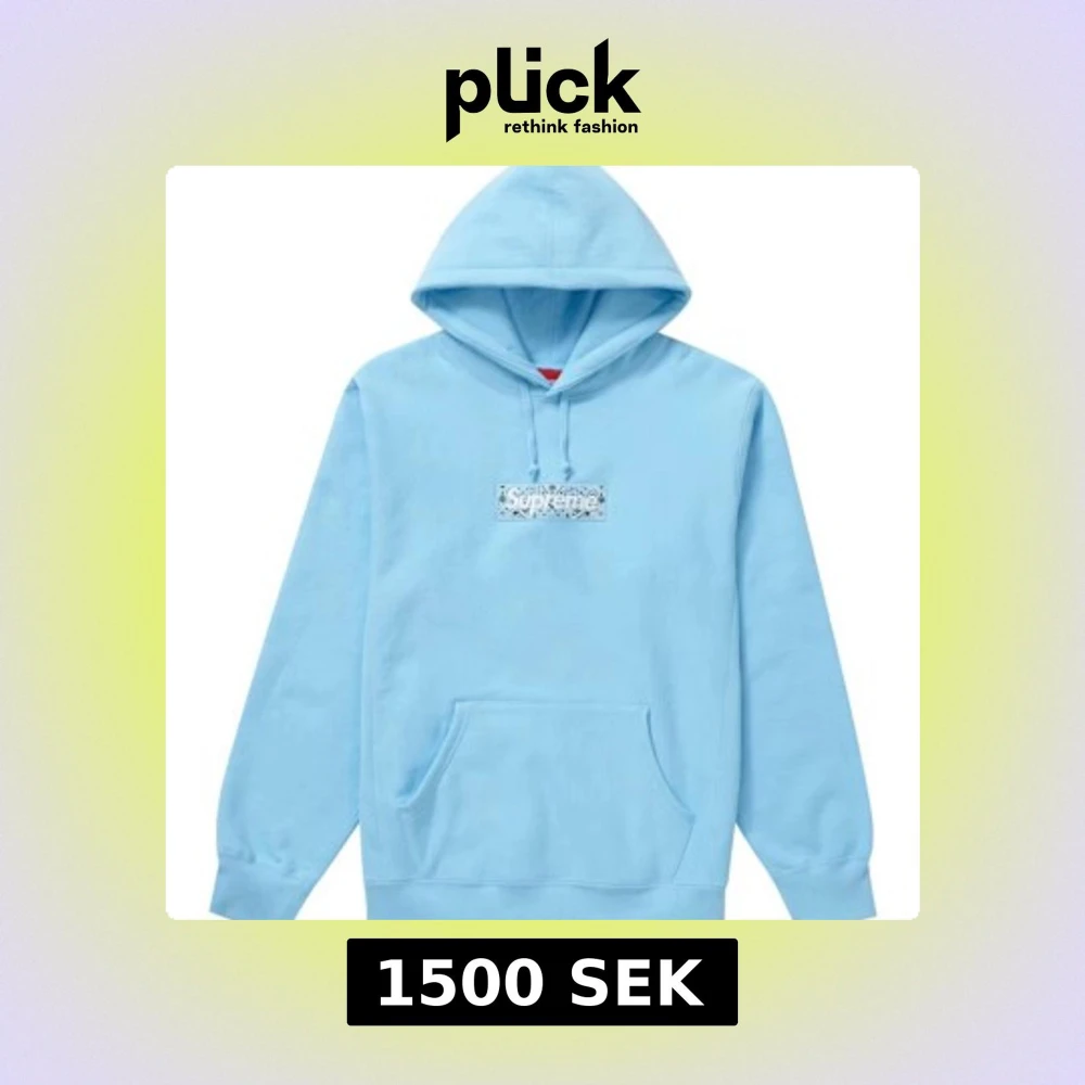 Supreme hoodie i ljusblått med klassisk box logo framtill.