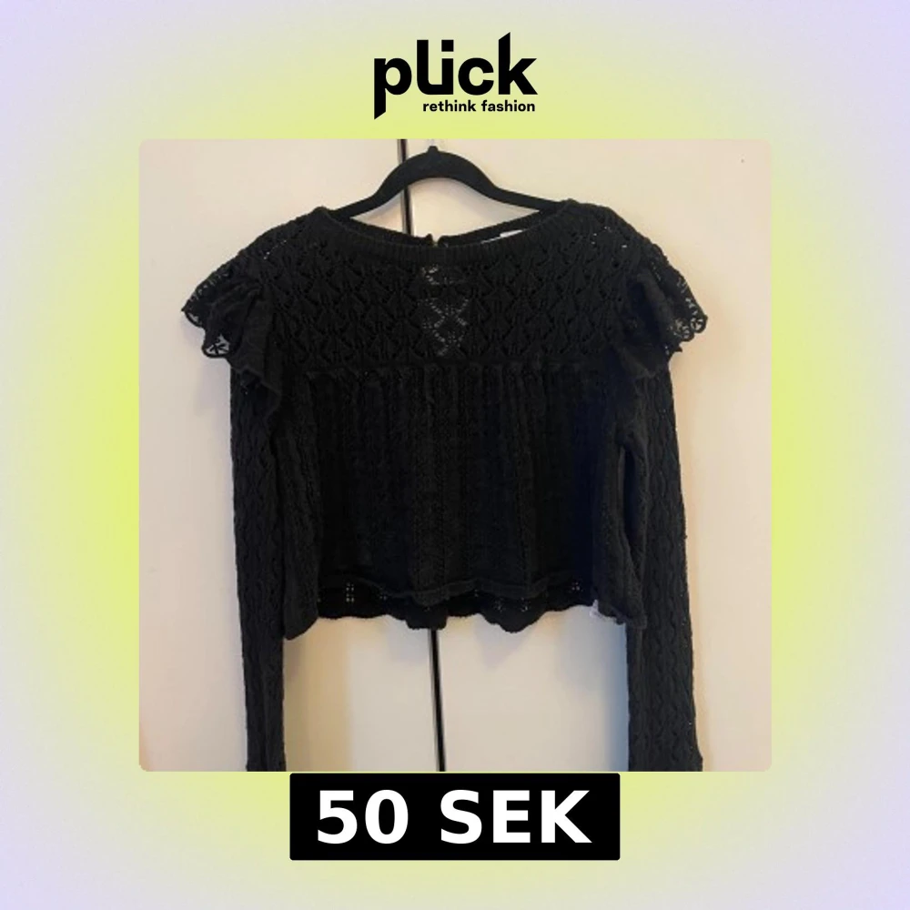 Säljer en svart blus i spets med lång ärm och rund halsringning. Blusen har fina spetsdetaljer över hela plagget samt knapp i nacken. Perfekt för dig som gillar romantisk stil.