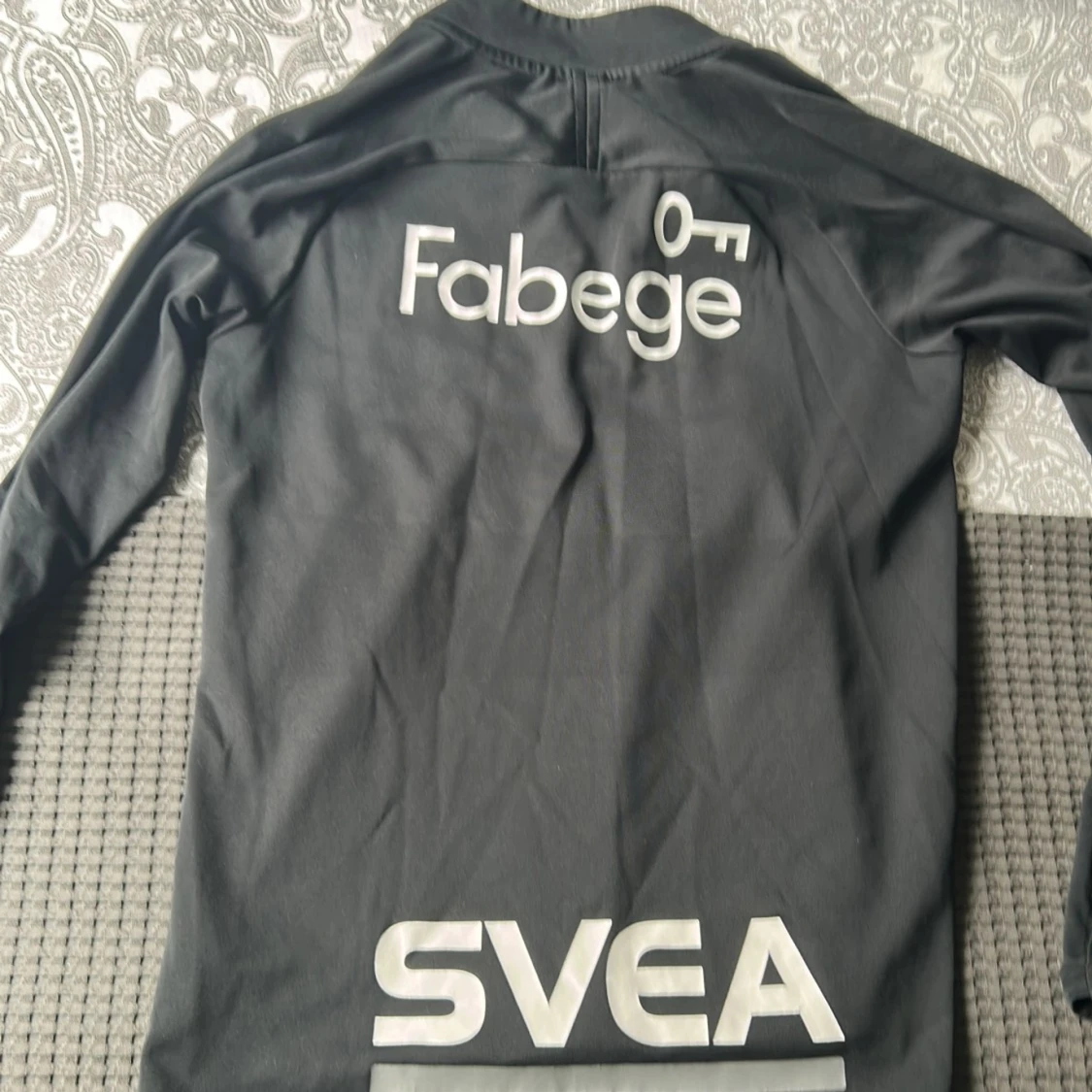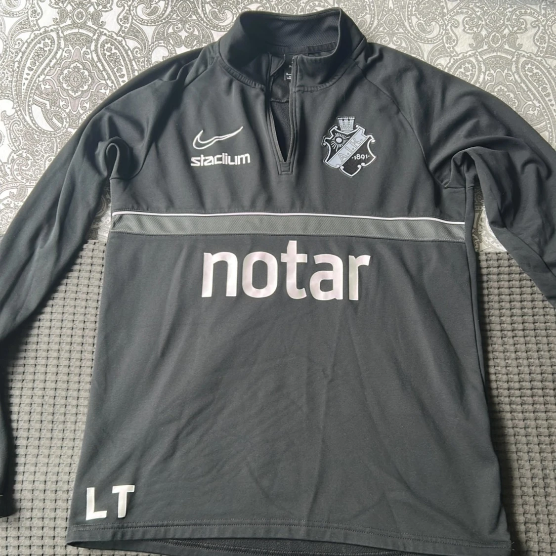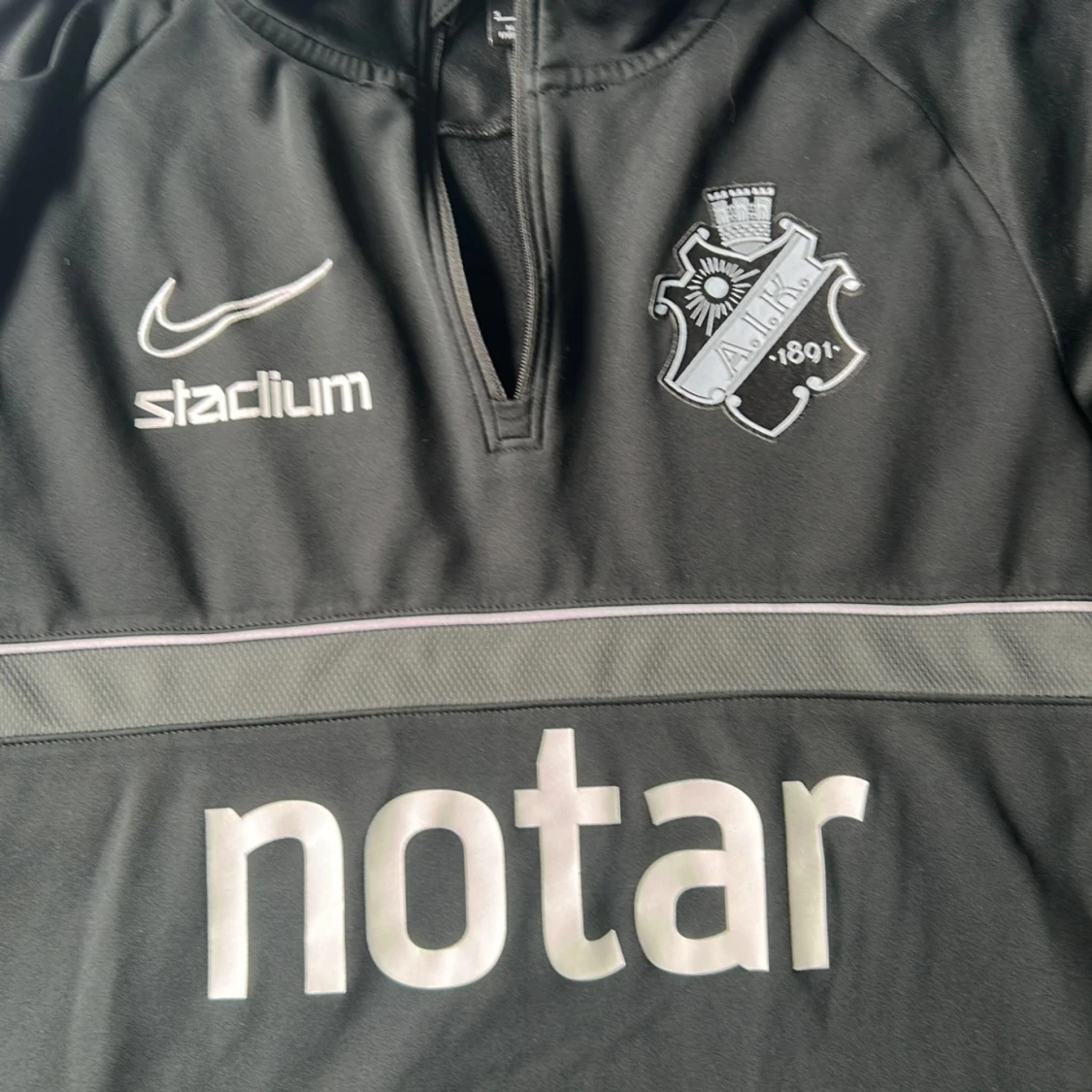 Svart långärmad träningströja från Nike med AIK:s klubbmärke, sponsorer och dragkedja vid halsen. Tillverkad i Dri-Fit material som andas. Perfekt flr träning eller en avslappnad stil.