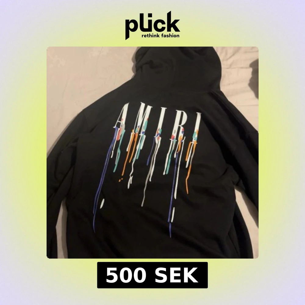 Svart hoodie från Amiri med stor logga och färgstänk på ryggen samt mindre tryck på bröstet. Klassisk huva med snörning och känguruficka framtill. Snygg streetwear-vibe och riktigt skön passform. Passar vikterna från 77kg - 95kg