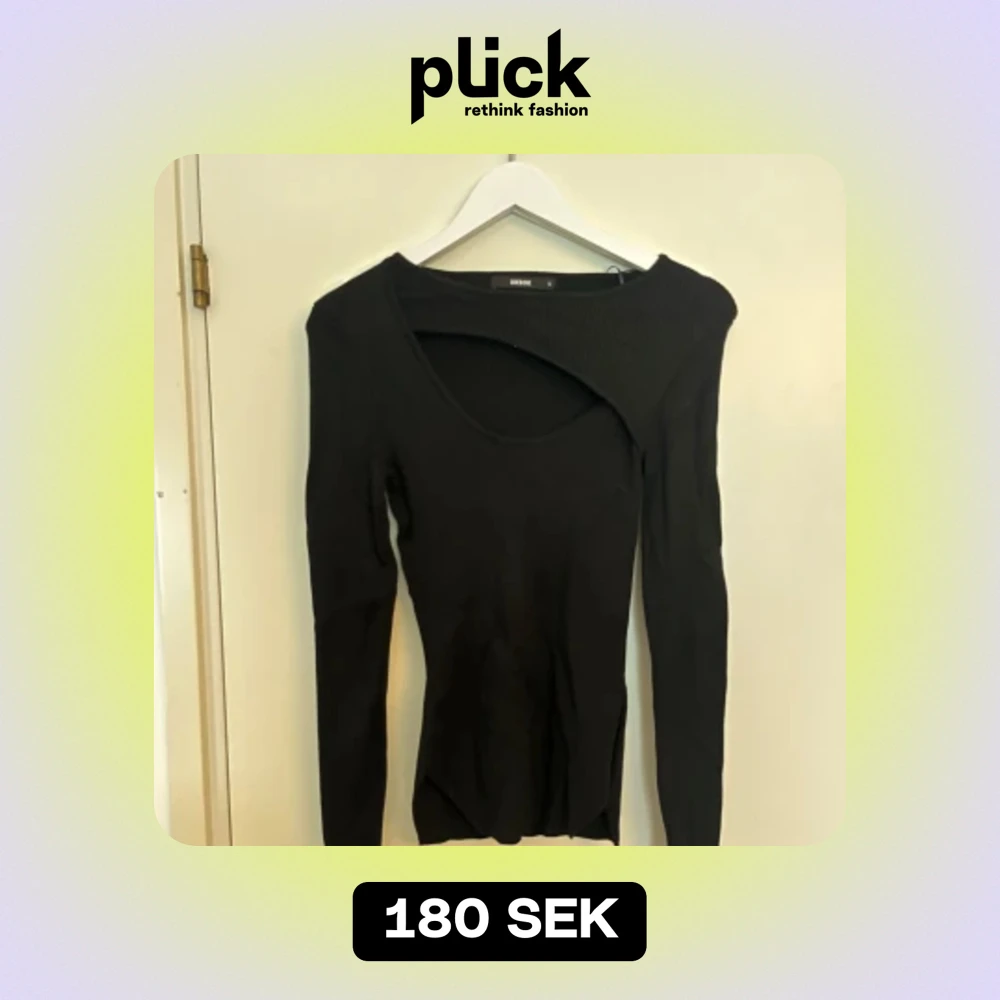 Väldigt fin, svart långärmad med detalj över bröst från BikBok, samt fina ”skurningar” nedtill på sidorna. Endast använd en gång. Storlek S. (Ordinariepris 399kr)