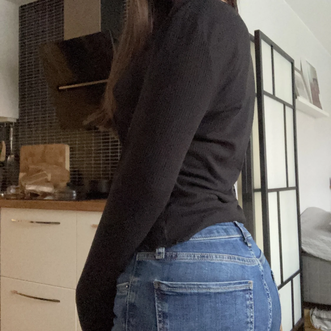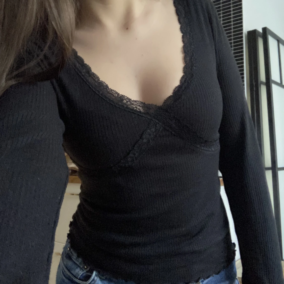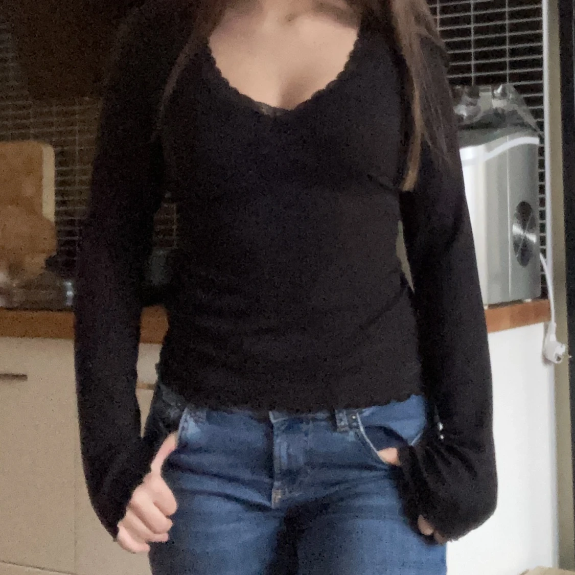 Svart långärmad tröja från bikbok med spetsdetaljer på bröstet. Snygg tröja nästan aldrig använd.
