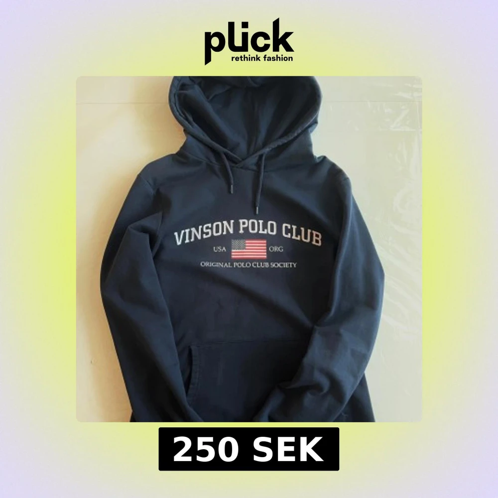 Snygg svart hoodie från Vinson Polo Club med tryck framtill och en amerikansk flagga. Den har en klassisk känguruficka och justerbar huva med dragsko. Perfekt för en avslappnad stil.