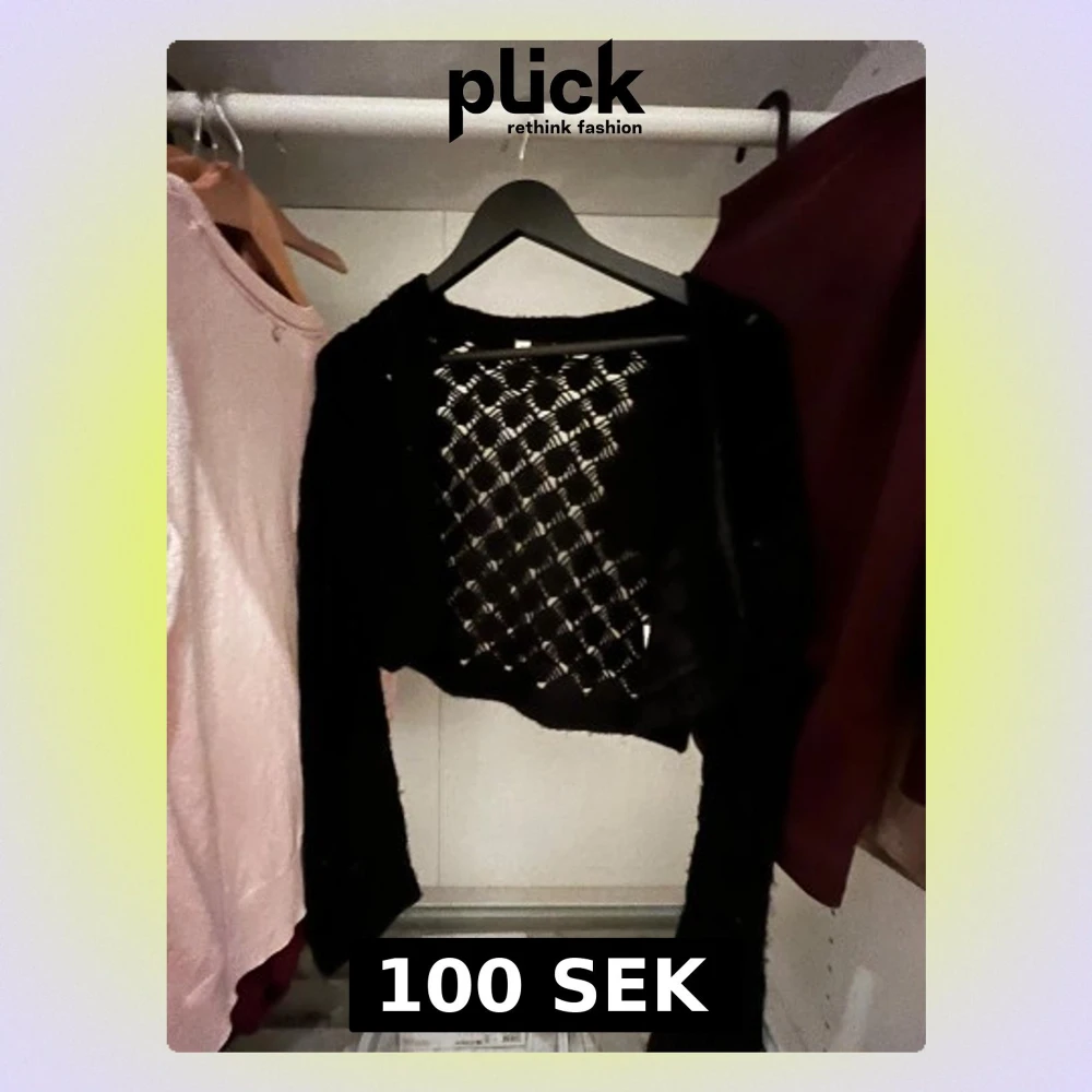 Säljer en svart bolerotopp från Ofelia i storlek M. Toppen är croppad med långärmade armar och har ett snyggt hålmönster över hela plagget😁