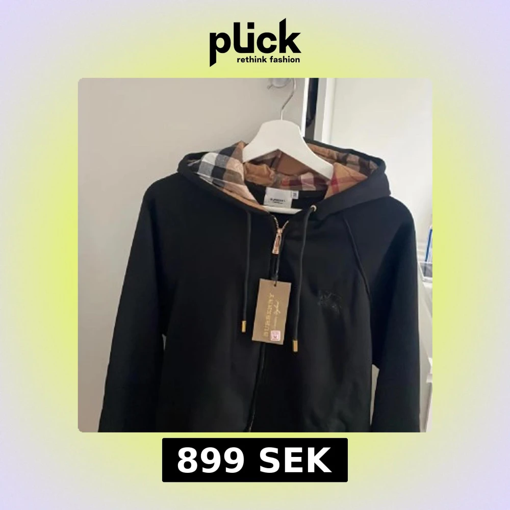 Finns även i olika storlekar hör av er för mer info. Svart hoodie från Burberry med klassiskt rutigt foder i huvan och guldfärgade detaljer på dragkedjan och snörningen. Tröjan har lång ärm, huva och snyggt broderad logga på bröstet. Perfekt för dig som gillar stilrena streetwear-plagg med lyxig känsla.