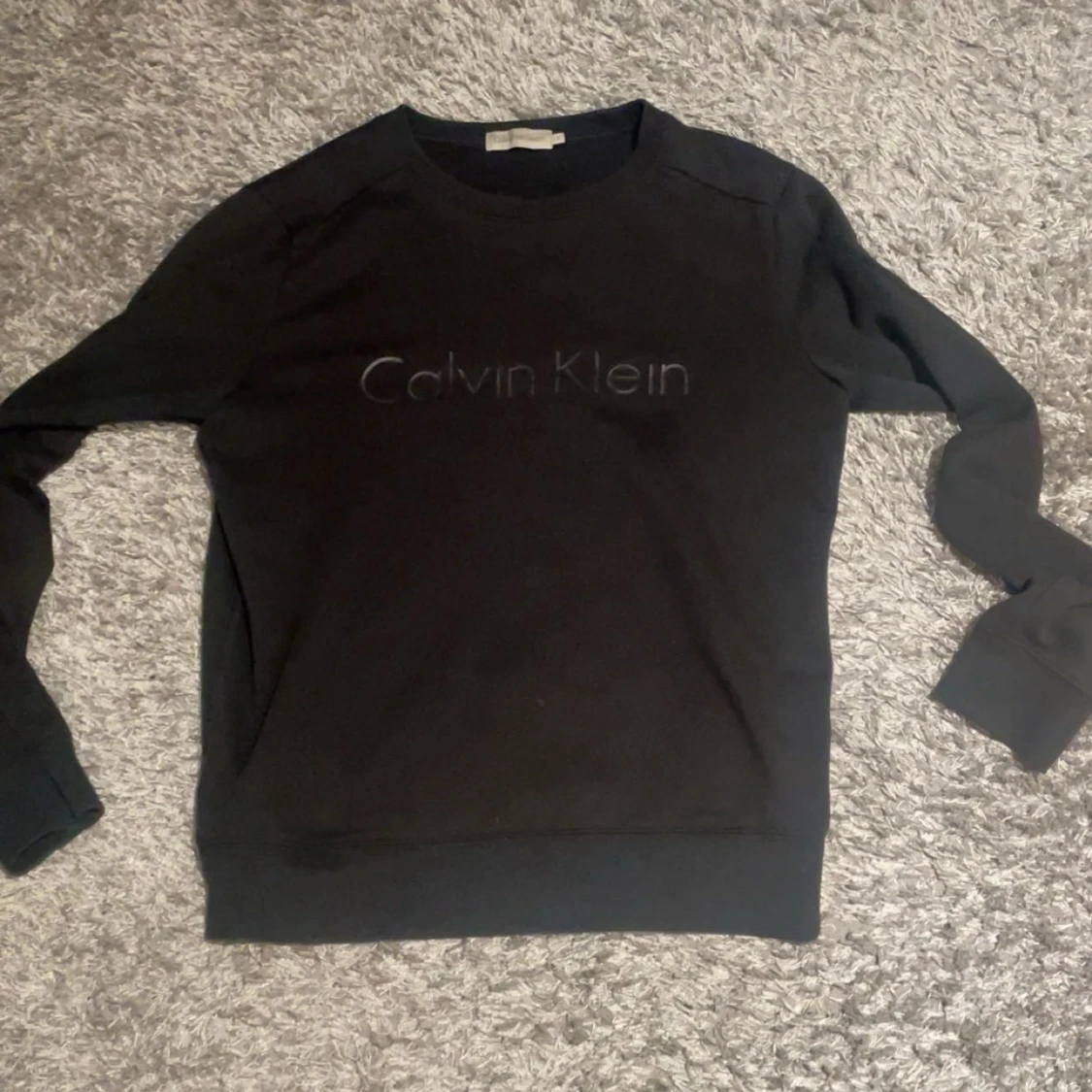 Svart sweatshirt från Calvin Klein med diskret logga framtill. Klassisk rund halsringning och långa ärmar. Mjuk och skön bomullsblandning, perfekt för en chill och stilren look.