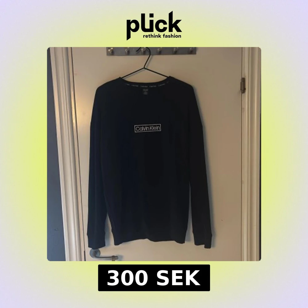 Svart sweatshirt från Calvin Klein i storlek M. Tröjan har ett stilrent vitt Calvin Klein-tryck både fram och bak samt ribbade muddar vid ärmslut och hals. Mjuk bomullskvalitet och klassisk passform med långa ärmar. Perfekt för en chill och clean look.