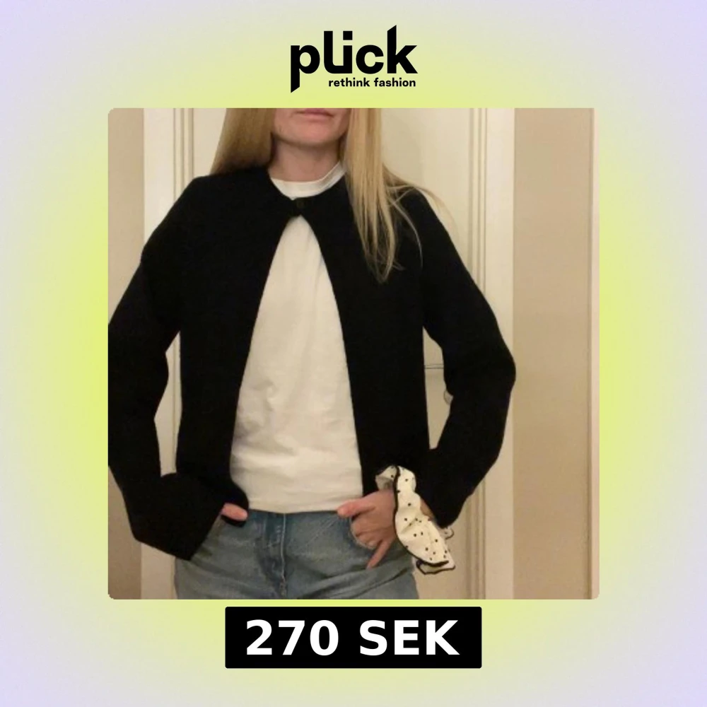 Svart stickad kofta med enkel knappstängning upptill. Super fin att ha över en T-shirt, fin både knäppt och öppen!