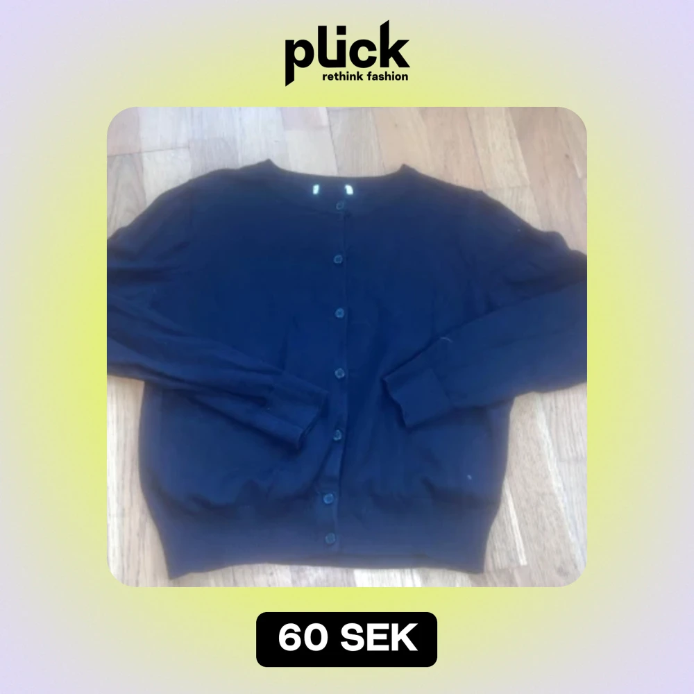 Svart cardigan med knappar. Lappen bortklippt men tror den är från H&M eller Gina Tricot!