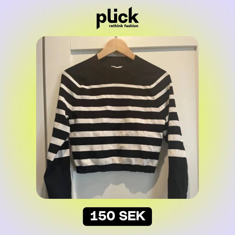 Säljer en superfin randig tröja från COS i svart och vit. Den är croppad och har långa ärmar, perfekt för en stilren look. Materialet är en blandning av viskos, polyamid och elastan vilket gör den både bekväm och stretchig. Passar perfekt till både vardag och fest!