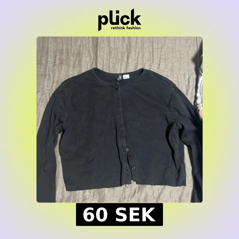 Svart croppad kofta från Divided med rund halsringning och knäppning framtill. Långärmad och i mjukt bomullsmaterial, perfekt att styla över ett linne eller t-shirt.