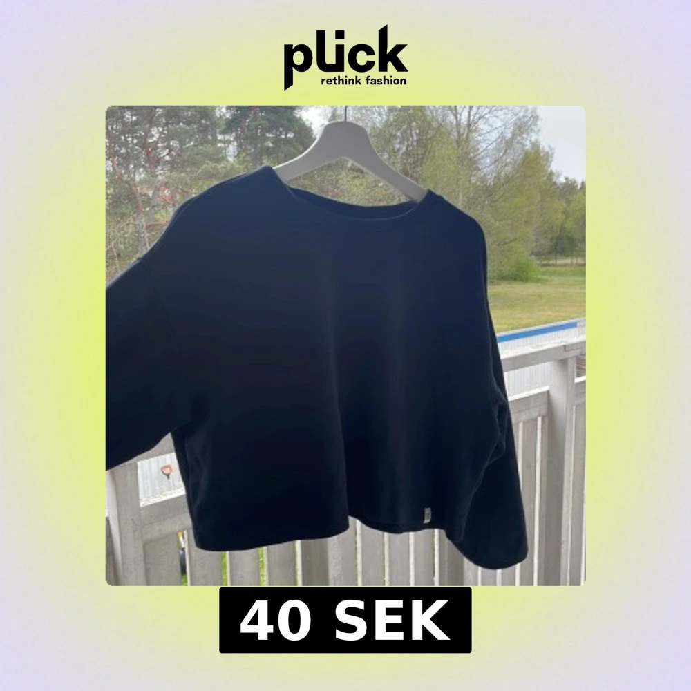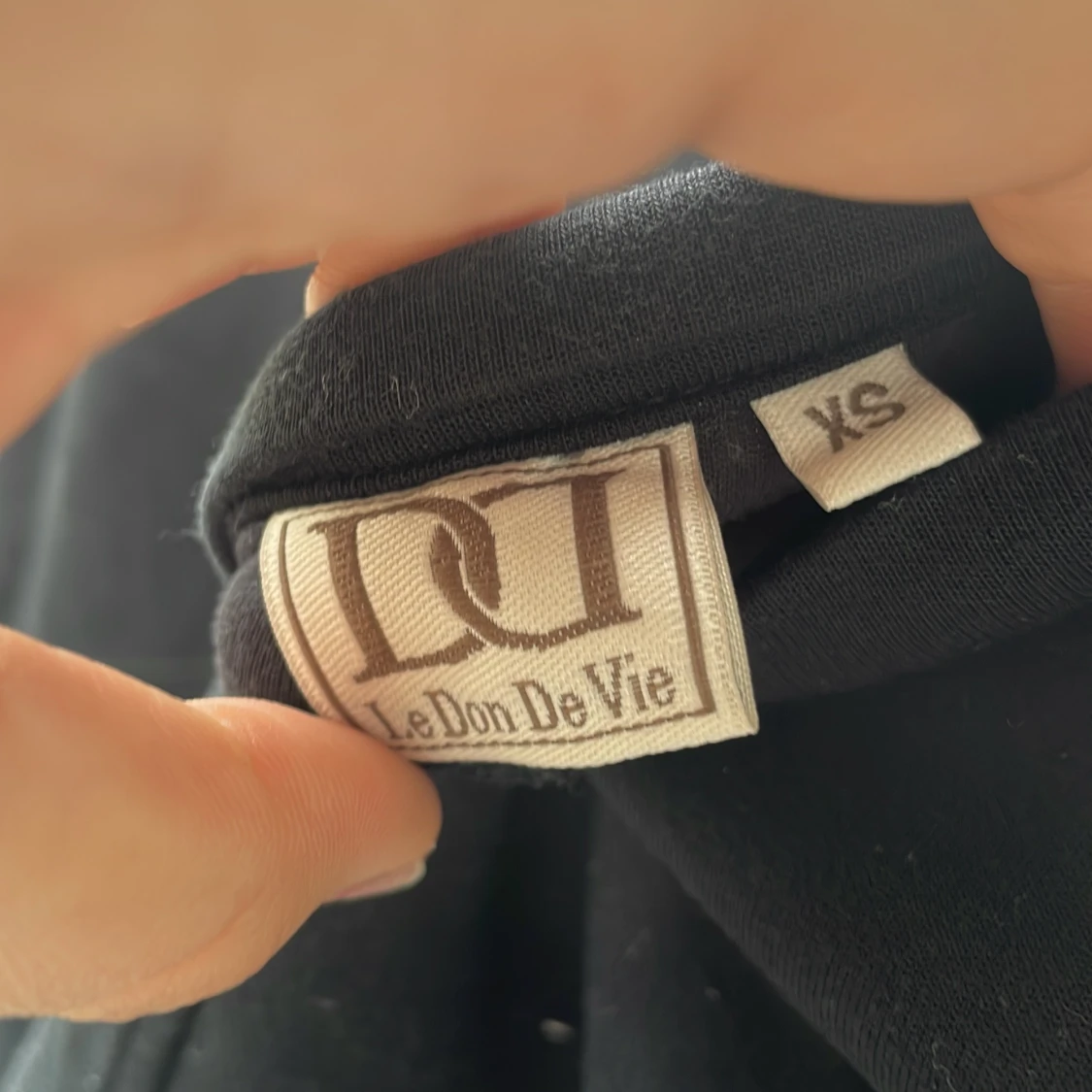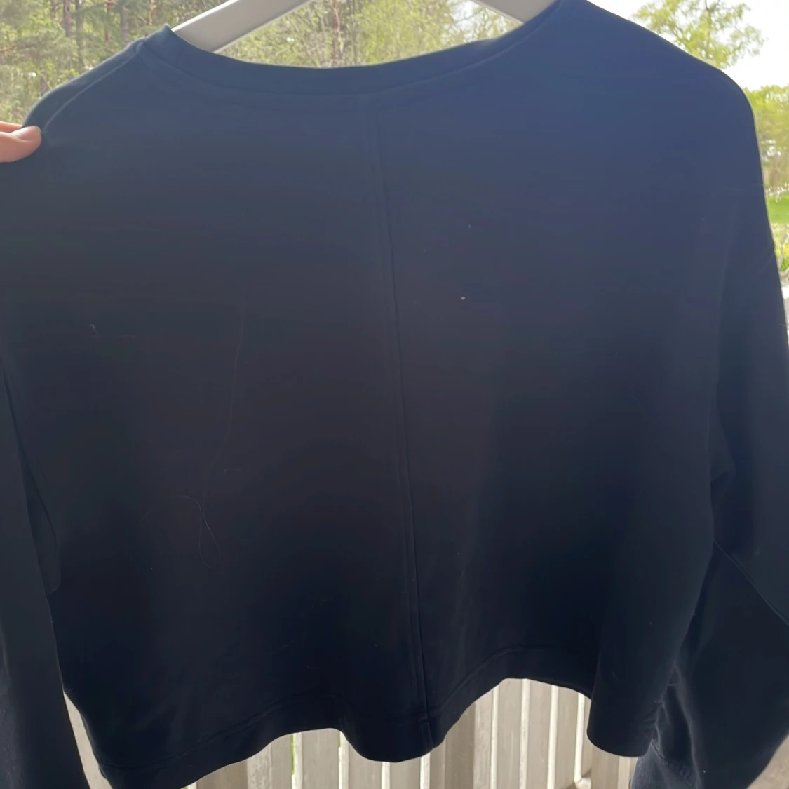 Säljer en svart croppad sweatshirt från Le Don De Vie i storlek XS. Tröjan har en enkel design med rund halsringning och långa ärmar. Perfekt för en avslappnad och stilren look.