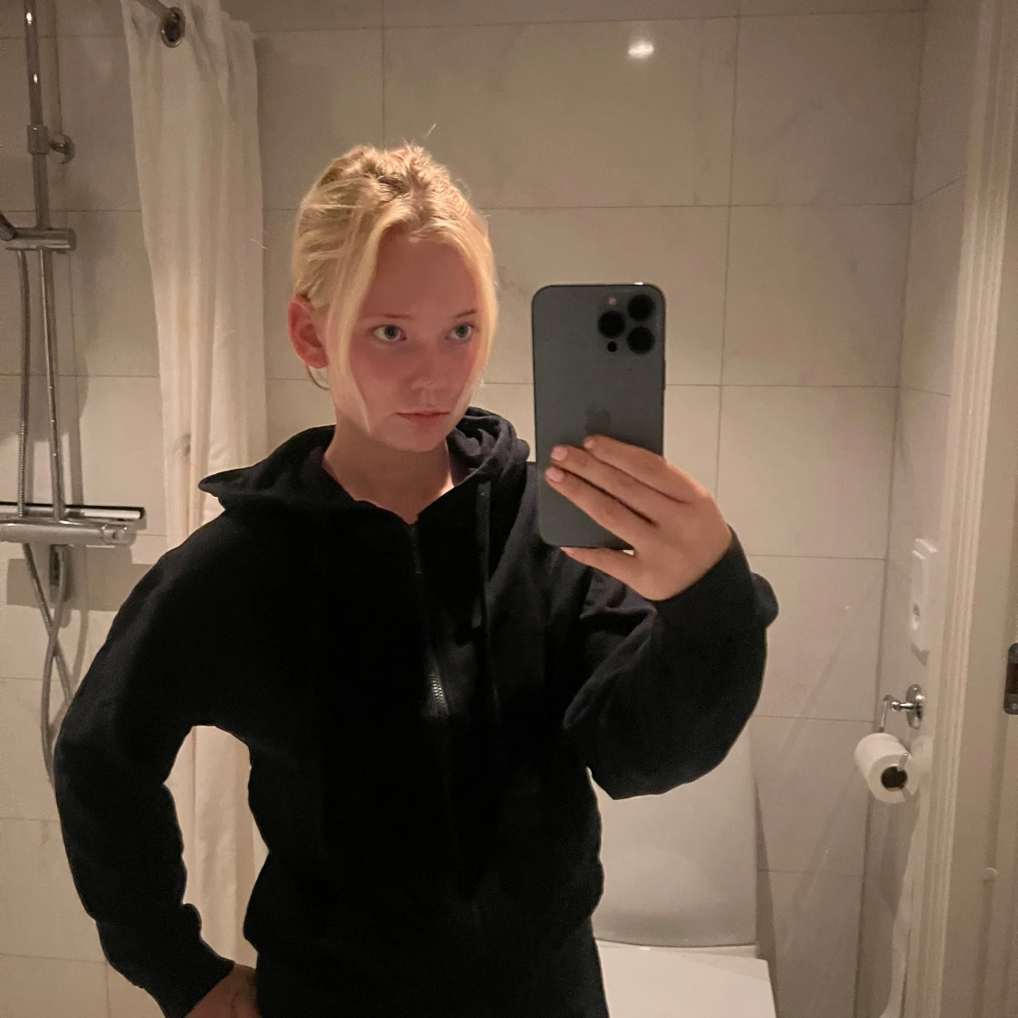 Svart hoodie med dragkedja framtill och huva. Modellen är loose fit och har långa ärmar. Perfekt för chill dagar eller när du vill ha något bekvämt och stilrent. Passar till allt och är enkel att matcha med andra plagg.