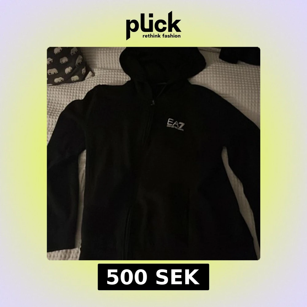 Svart hoodie från EA7 Emporio Armani med dragkedja framtill och vit logga på bröstet. Tröjan har huva och är långärmad, perfekt för en chill och stilren look. Materialet är mjukt och bekvämt, troligen bomullsmix. Passar dig som gillar klassisk streetwear.