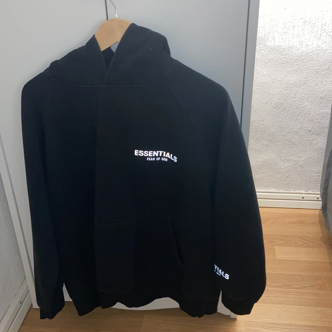 Svart hoodie från Essentials Fear of God. storlek M men passar bättre på S