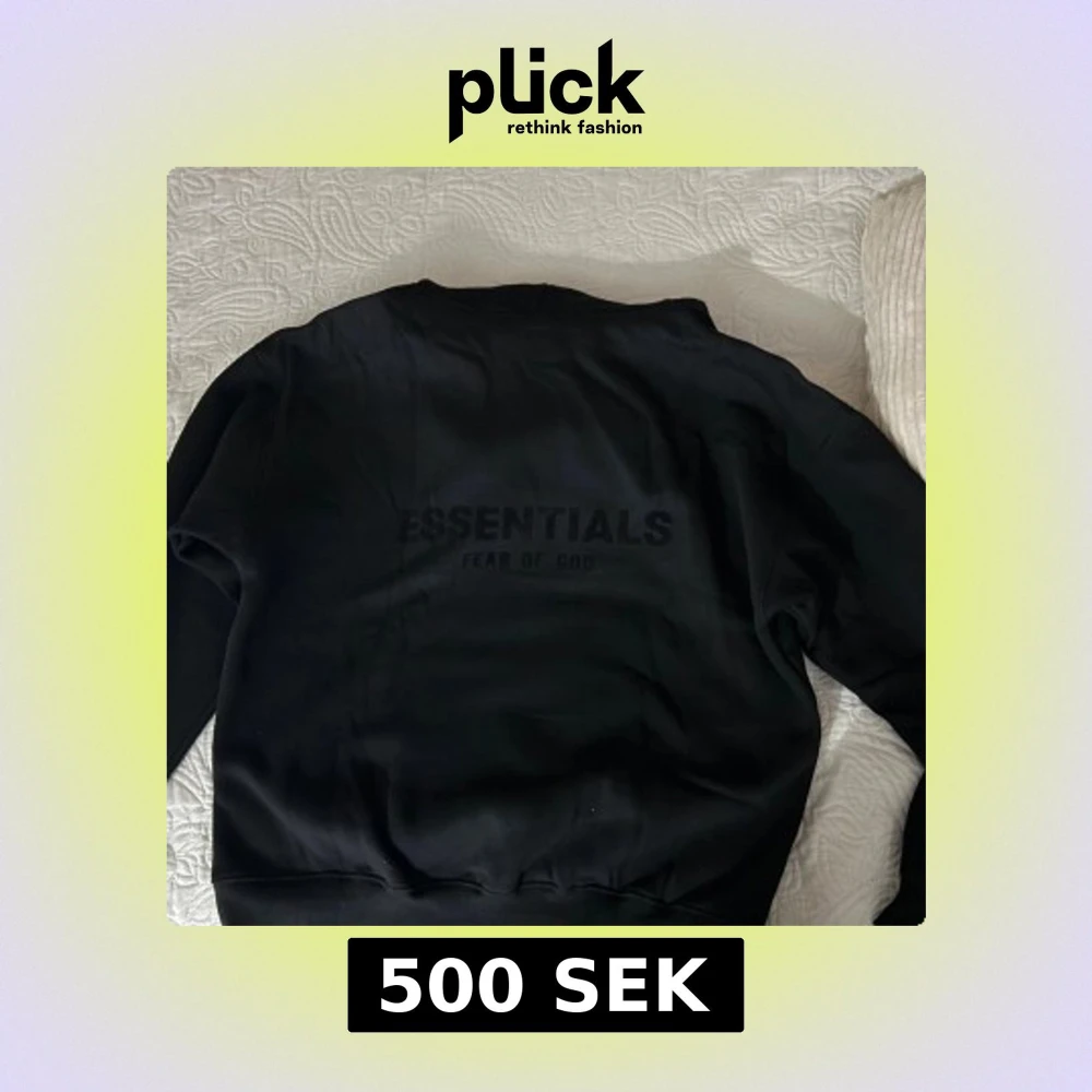 Svart hoodie från Essentials Fear of God med stor logga på ryggen och diskret patch på ärmen. Tröjan har huva och är långärmad, tillverkad i mjuk bomullsmix som är perfekt för chill dagar. Klassisk loose passform och stilren look.