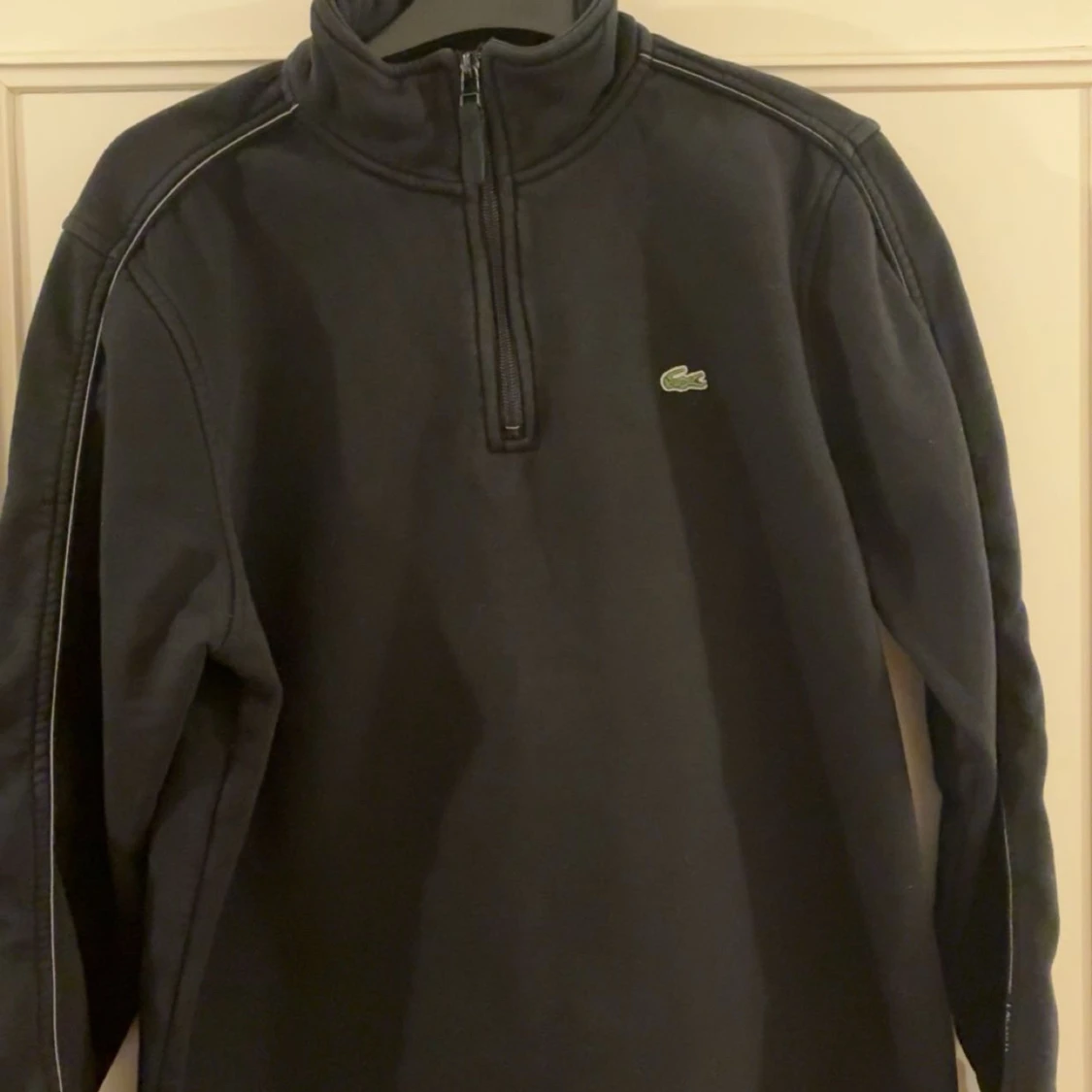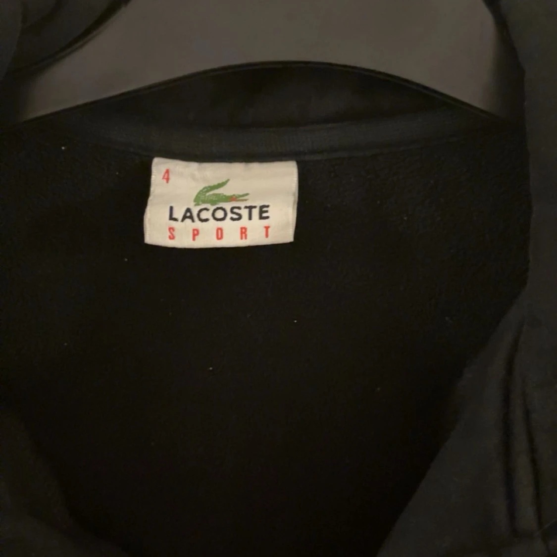 Svart fleece-tröja från Lacoste Sport med half zip och hög krage. Klassisk krokodil-logga på bröstet och diskreta sömdetaljer längs axlarna. Perfekt för kyliga dagar och sportiga outfits.