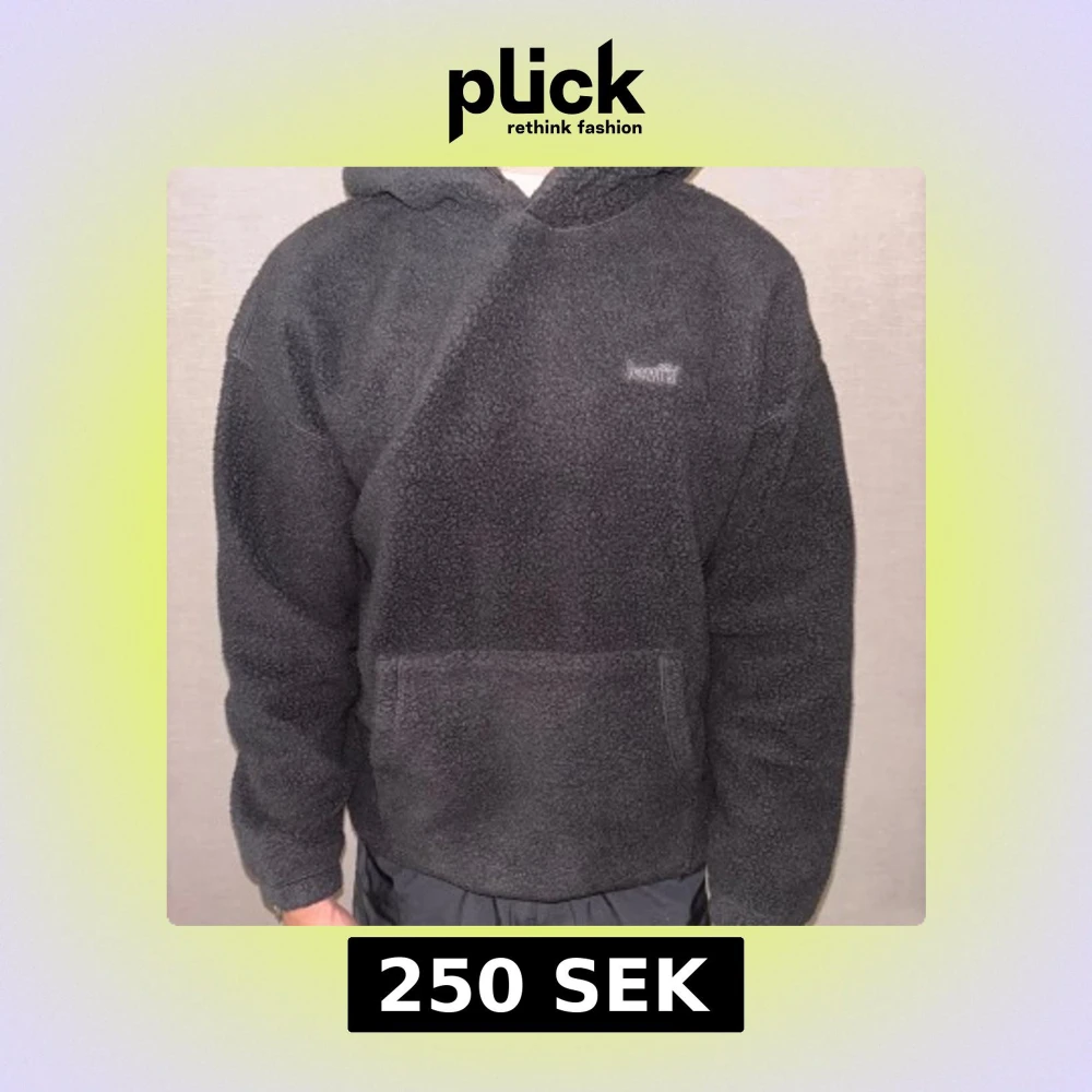 Mysig svart hoodie från Levi's i fleece med stor huva och magficka framtill. Perfekt för kyliga dagar, med relaxed fit och diskret Levi's-logga på bröstet. Riktigt skön att dra på sig när du vill vara både varm och stilren. Aldrig använd. Köpt på Zalando för 460:- Storlek S men passar M bättre!