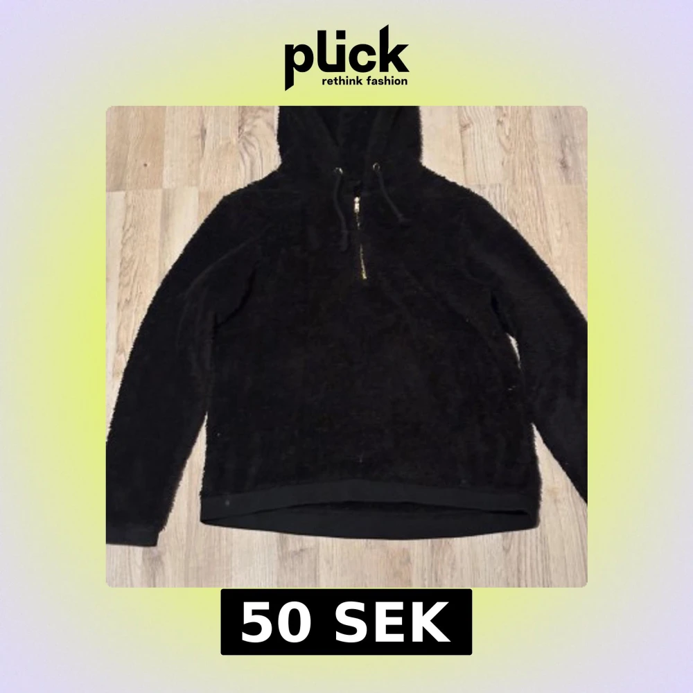 Mysig svart hoodie i fleece med dragkedja och huva. Perfekt för kyliga dagar med sin mjuka och varma känsla. Den har långa ärmar och en justerbar dragsko i huvan.