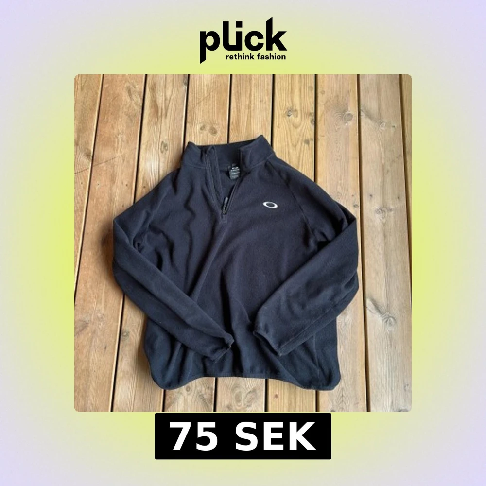 Svart fleece-tröja från Oakley med halv dragkedja framtill och Oakley-logga på bröstet. Tröjan har lång ärm och hög krage, perfekt för kyliga dagar. Mjuk och bekväm med enkel design. Det är en barnstorlek (XL) vilket motsvarar S på here kläder:)