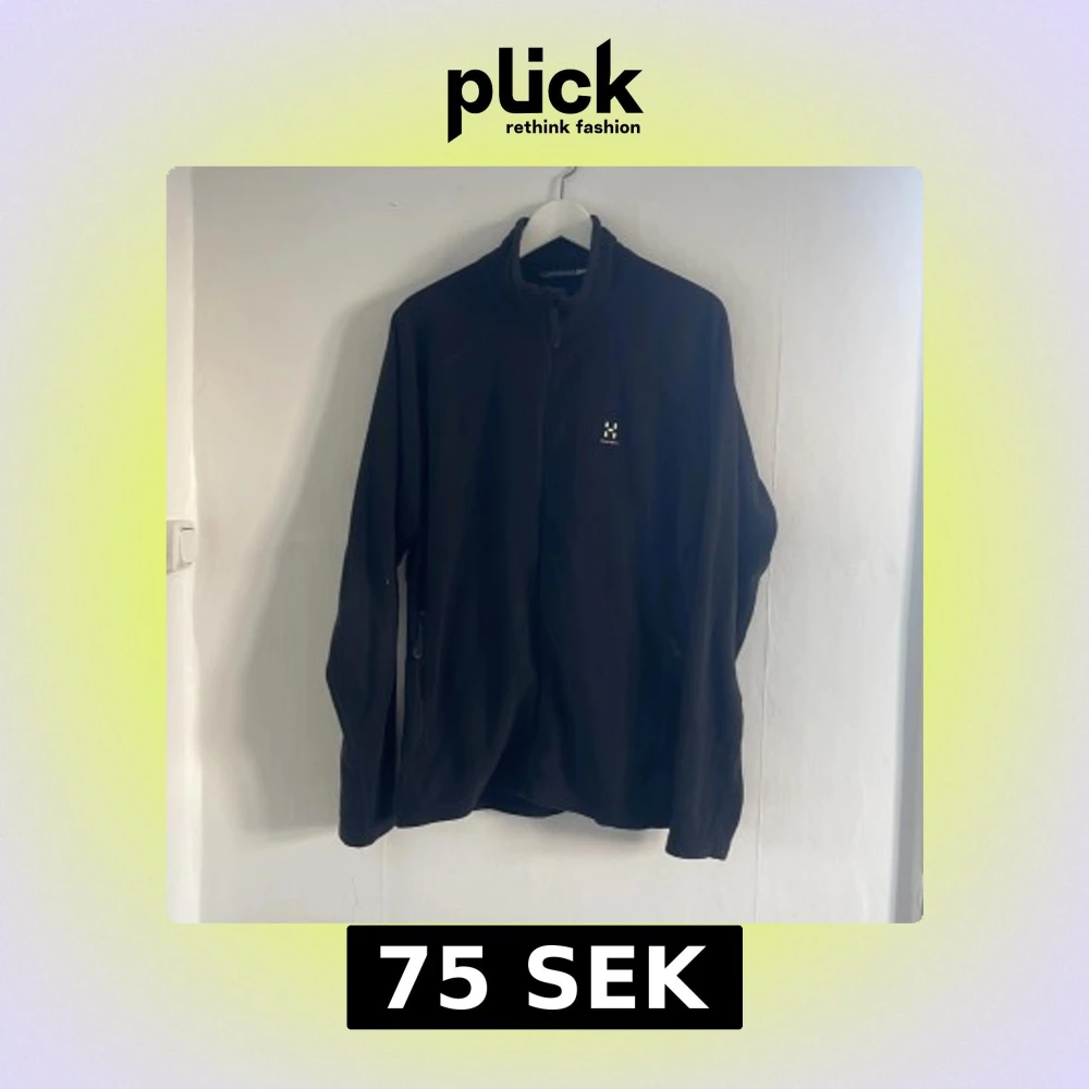 Säljer en svart fleecejacka från Haglöfs i storlek XL. Jackan har en dragkedja framtill och är långärmad. Perfekt för kyligare dagar och outdoor-äventyr. Haglöfs-logga på bröstet ger en stilren touch.