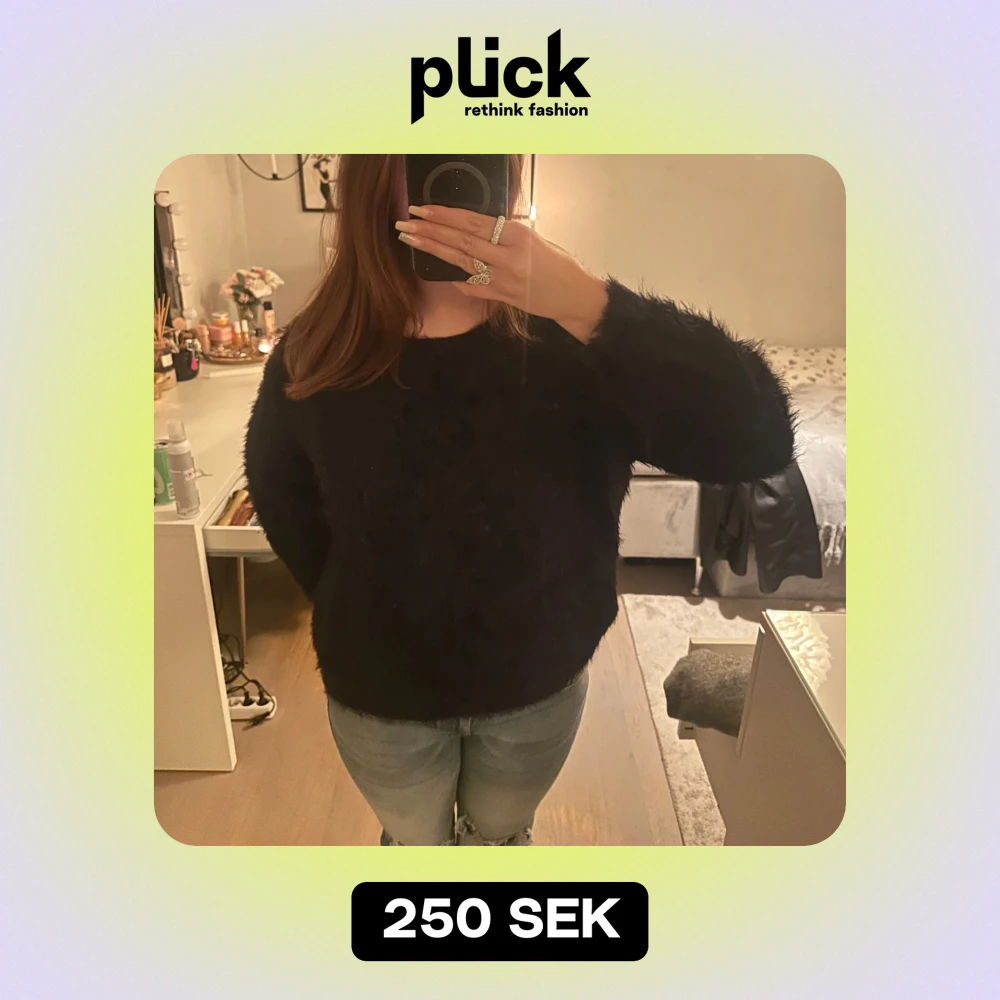 Mysig svart fluffig tröja perfekt för kyliga dagar. Tröjan har långa ärmar och en bekväm passform som passar till många olika outfits.