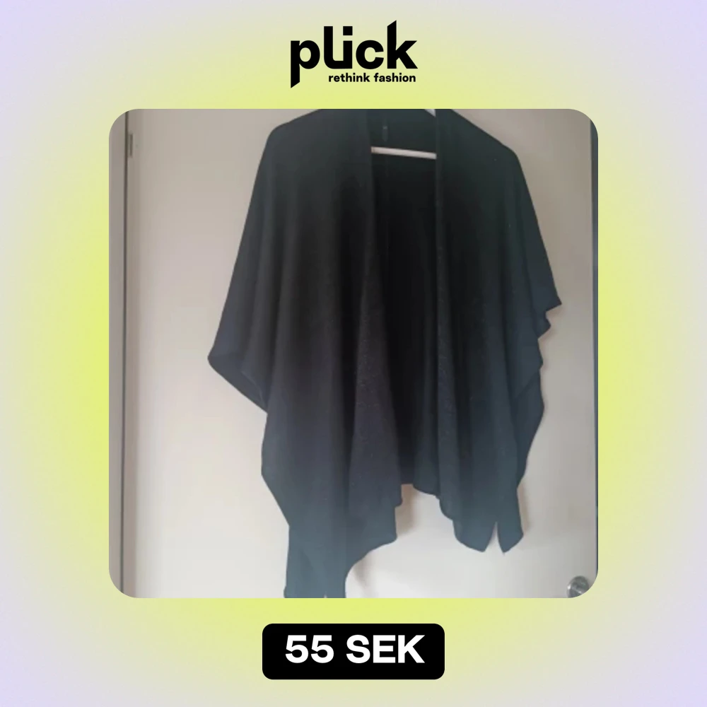 Säljer en elegant svart poncho med glittriga detaljer från märket Å frpn Åhlens. Perfekt för festliga tillfällen med sin stilrena design och glittriga yta. Den är både bekväm och chic.