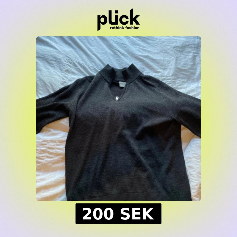 Svart stickad tröja från Bruun & Stengade i storlek XL. Tröjan har en snygg half zip-dragkedja vid halsen och ribbade muddar. Perfekt för dig som gillar en stilren och enkel look med lite edge. Passar M (mer verklig storlek)