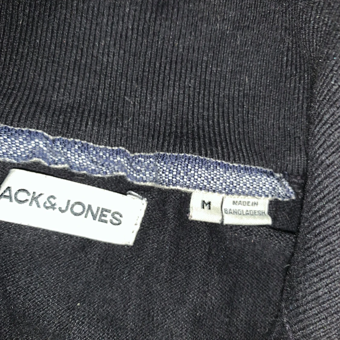 Svart långärmad tröja från Jack & Jones med hög krage och half zip-dragkedja. Tröjan har ribbade muddar vid ärmslut och nederkant, vilket ger en snygg och stilren look. Perfekt för lager-på-lager under höst och vinter.