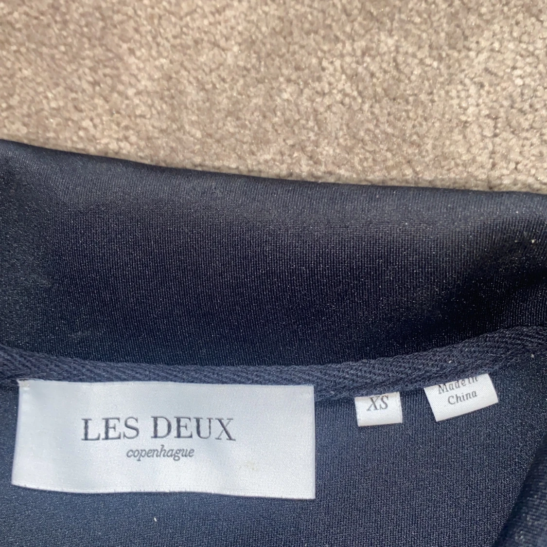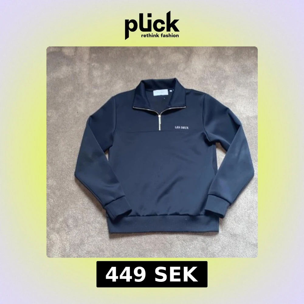Svart långärmad tröja från Les Deux med half zip och stilren vit logga på bröstet. Tröjan har hög krage och är gjord i mjukt material som känns skönt mot huden. Perfekt för dig som gillar en clean och enkel look. Hör av dig vid minsta fundering så svarar jag direkt! Priset är prutbart.
