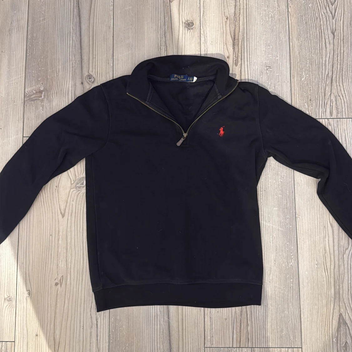Svart långärmad tröja från Polo Ralph Lauren med röd broderad logga på bröstet. Tröjan har en snygg half zip-dragkedja vid halsen och är gjord i mjuk bomull. Perfekt för dig som gillar klassisk och stilren look.