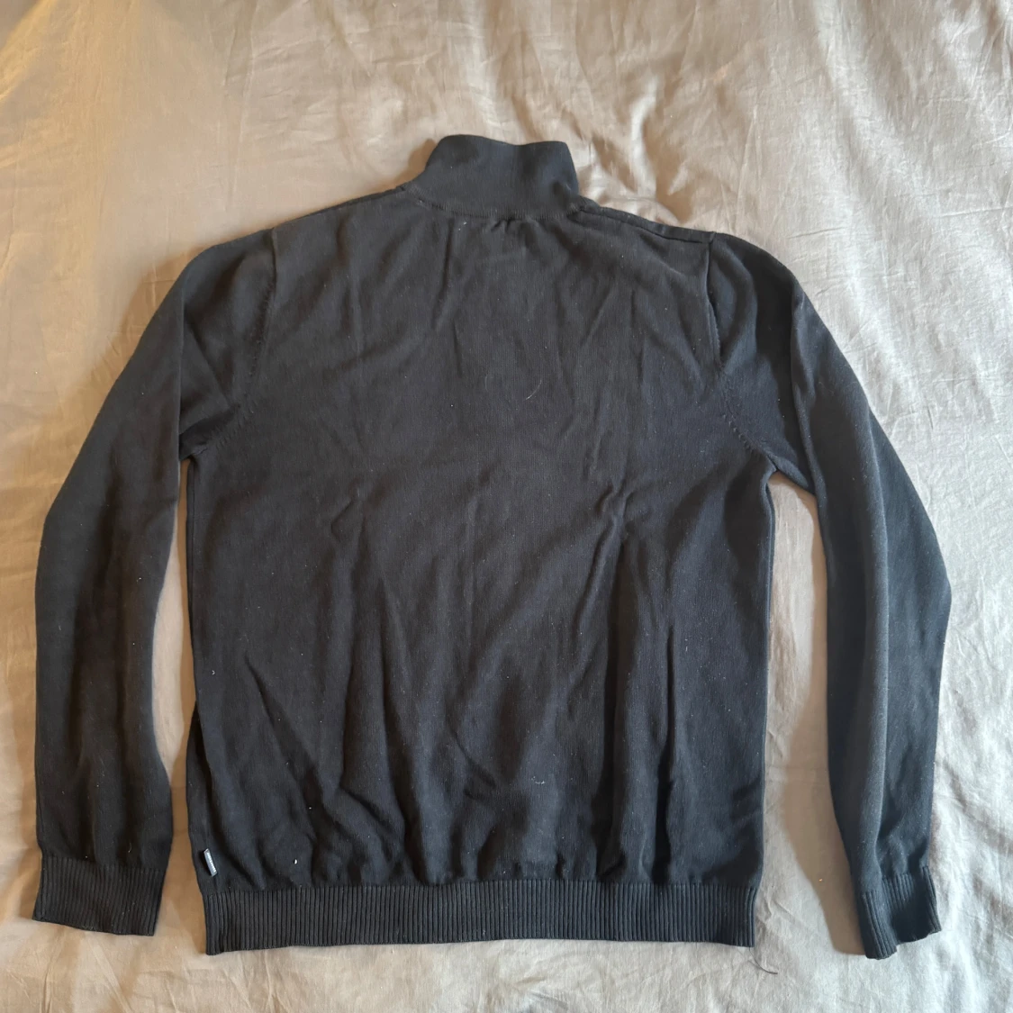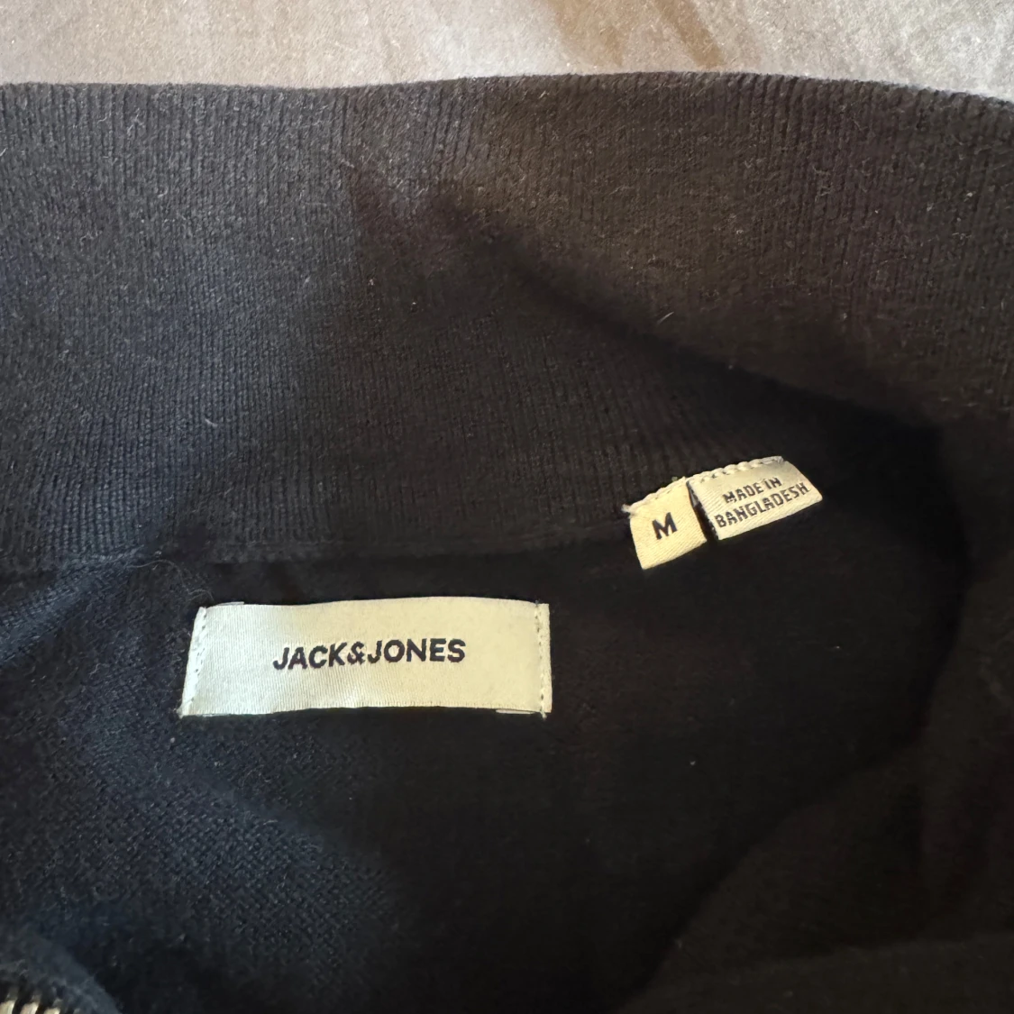 Svart långärmad tröja från Jack & Jones med half zip-dragkedja i halsen. Tröjan har ribbade muddar och är tillverkad i mjukt material som passar perfekt till lager-på-lager. Enkel och stilren design som funkar till det mesta.