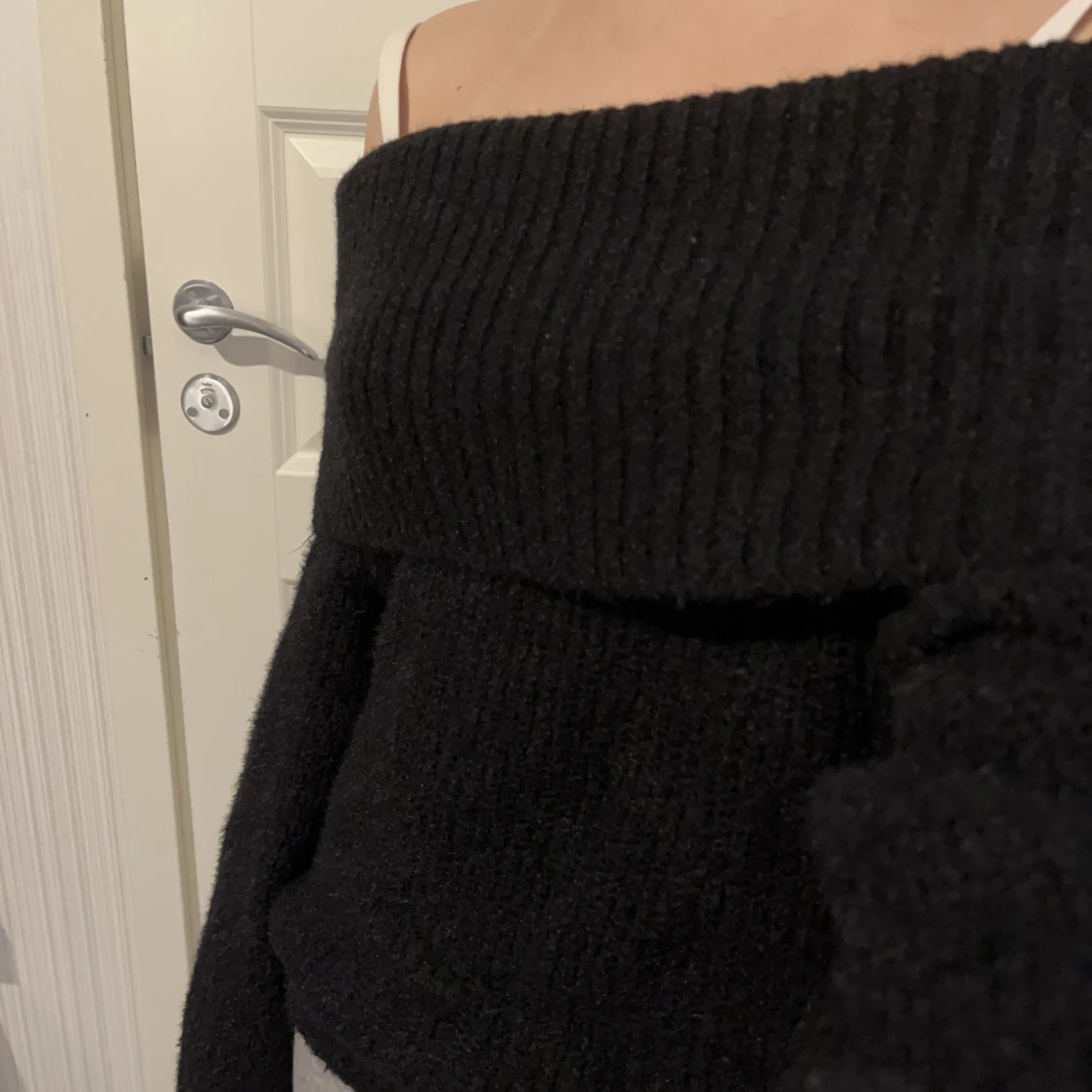 Säljer denna svarta stickade off-shoulder tröja. Den är från H&M och är använd 2ggr, är även slutsåld. 🫶🏻