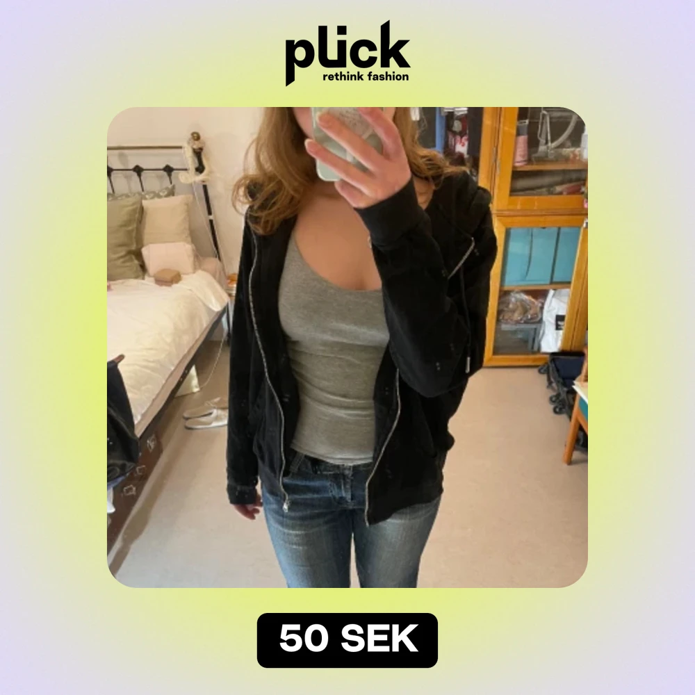 Jag säljer en svart zip-up. Den är i mycket fint skick. Ända defekten är ett litet grönt färg spår vid fickan. Men den syns inte om man inte letar efter den. Är i storlek L men inte Oversized