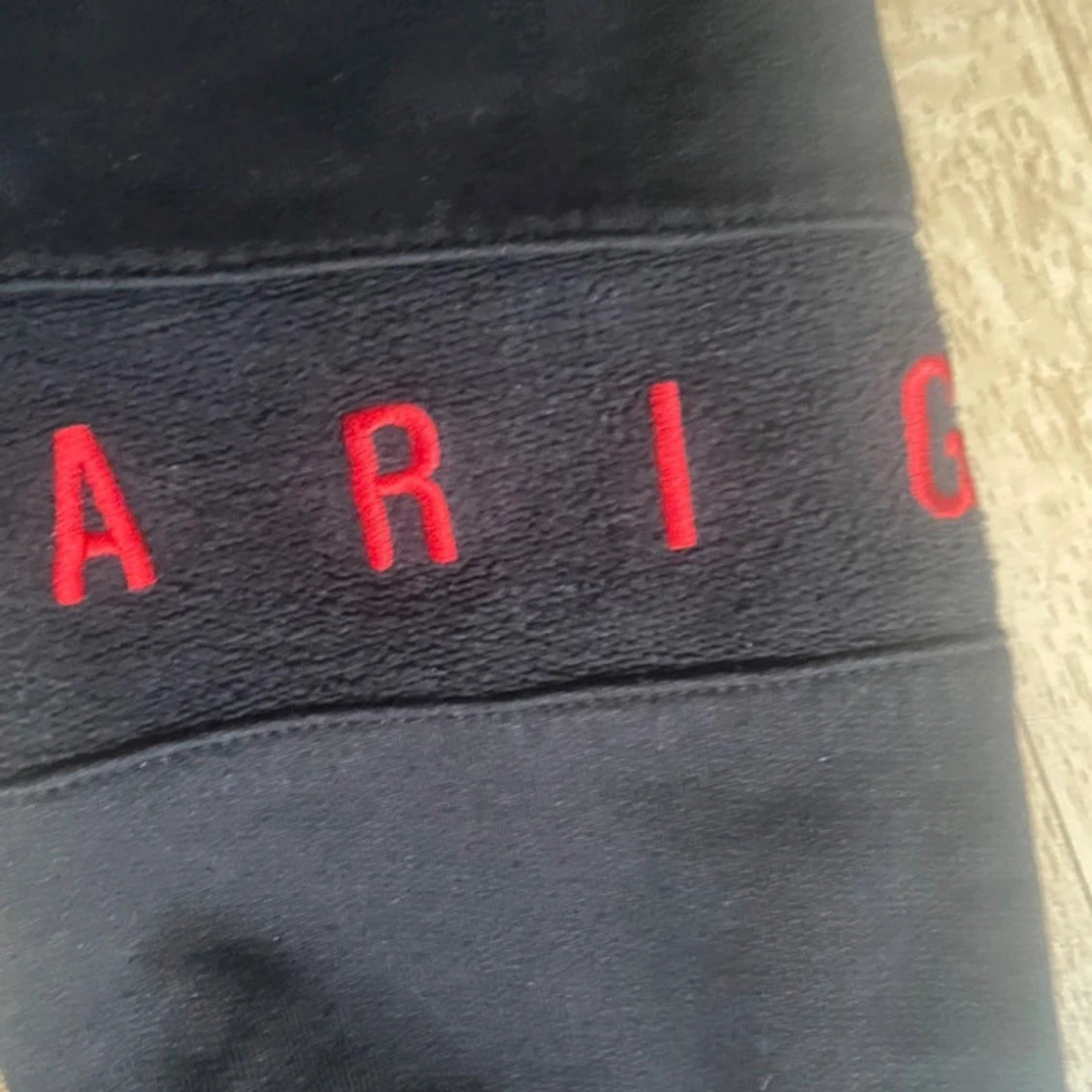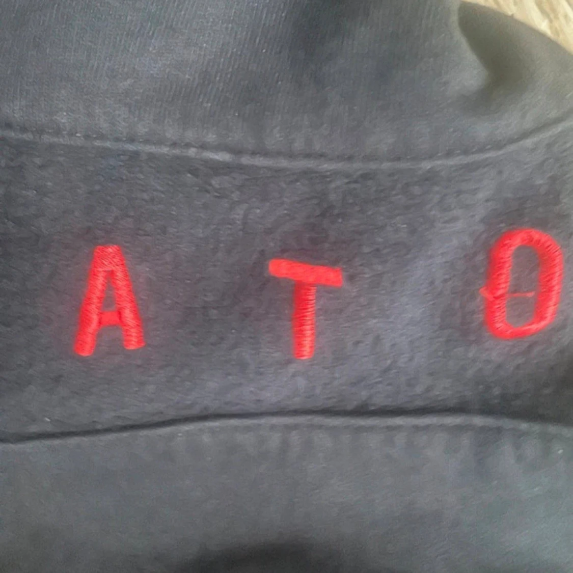 Svart hoodie från Arigato med röd broderad text på ena ärmen. Klassisk modell med huva, snörning och stor magficka. Mjuk och skön, perfekt för chill dagar. Snygg streetwear-vibe och enkel att matcha med jeans eller joggers.