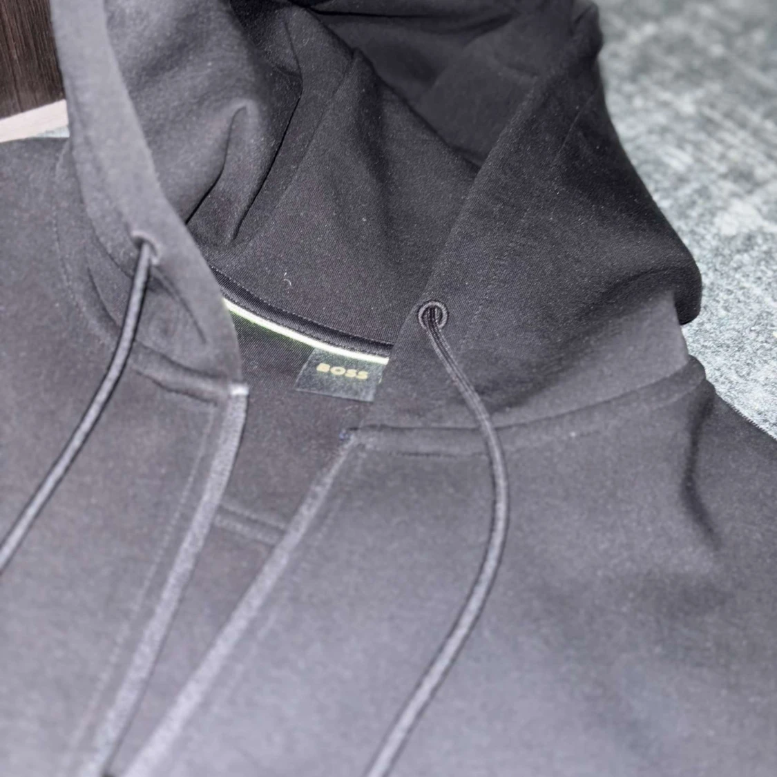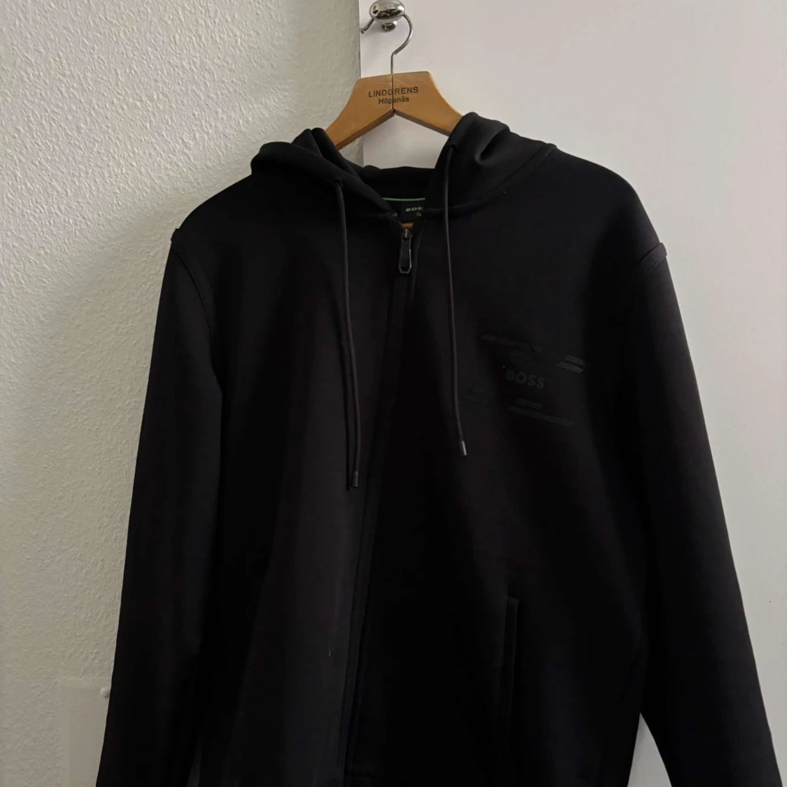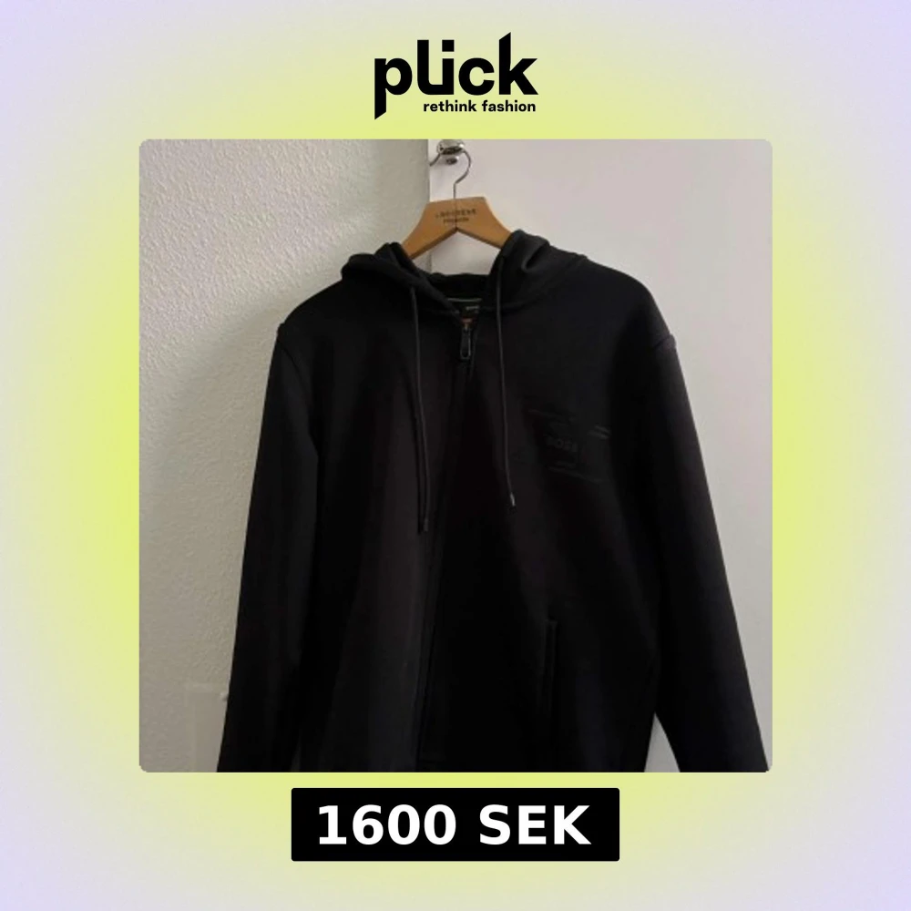Snygg svart hoodie från Boss med dragkedja och justerbar huva. Perfekt för en avslappnad stil. Rkt snygg, köpt från Urban Modern för någon månad sedan.