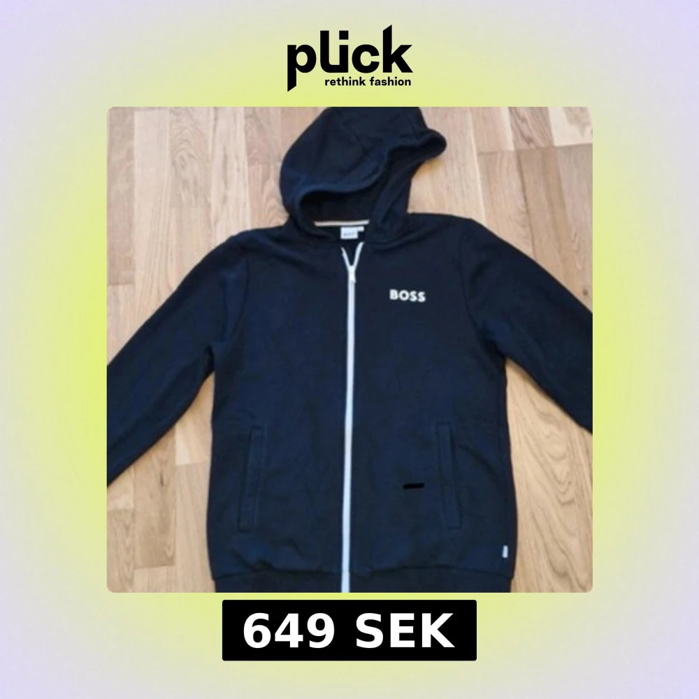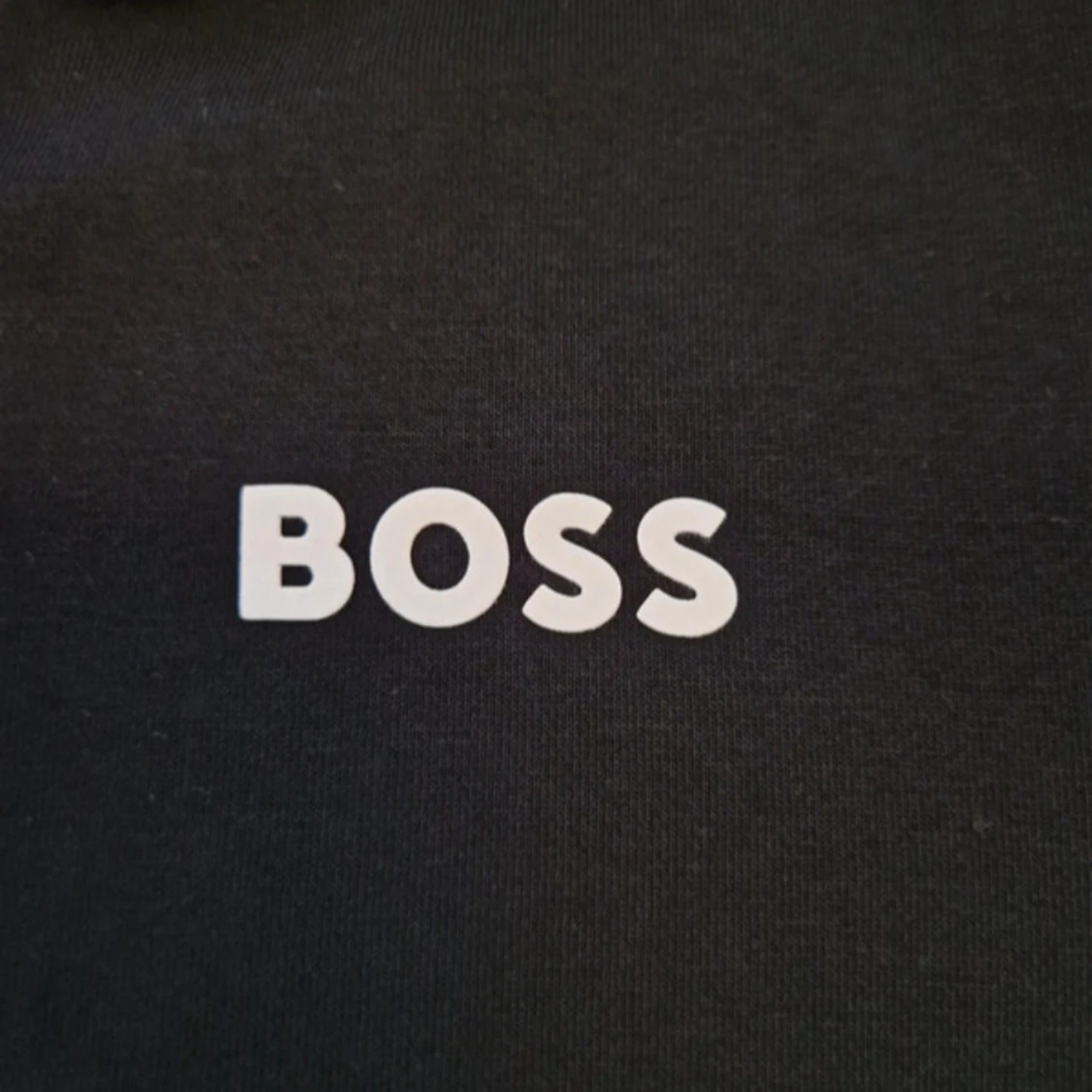 Svart hoodie från BOSS med vit logga på bröstet och hel dragkedja framtill. Tröjan har huva, två fickor och ribbade muddar vid ärmslut och nederkant. Perfekt för chill dagar och enkel att matcha med jeans eller joggers.