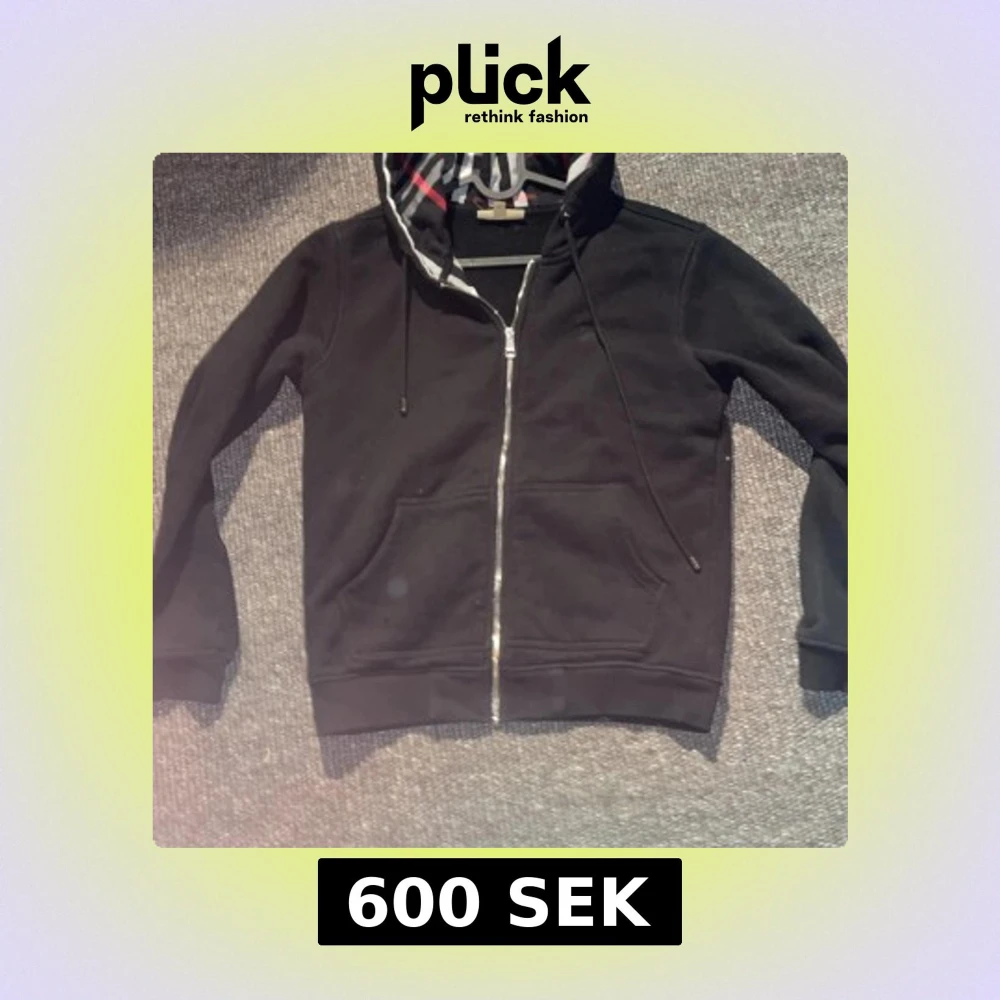 Svart hoodie från Burberry med klassiskt rutigt foder i huvan. Tröjan har hel dragkedja framtill, snörning i huvan och två fickor. Tillverkad i mjuk bomullsmix, perfekt för en chill och stilren look.