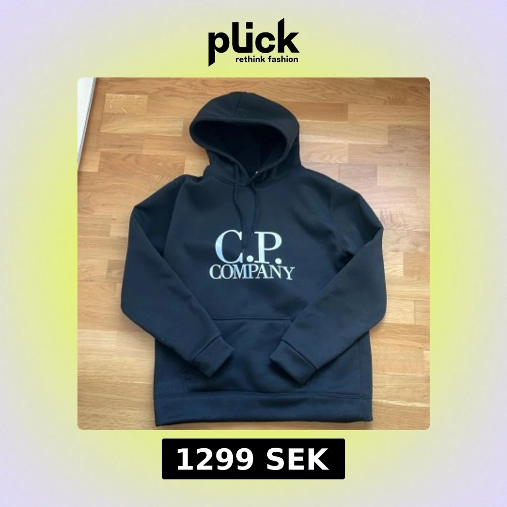 Svart hoodie från C.P. Company Stilren svart hoodie med stor vit logga på bröstet. Mjukt och bekvämt material med klassisk passform. Bra till vintern.