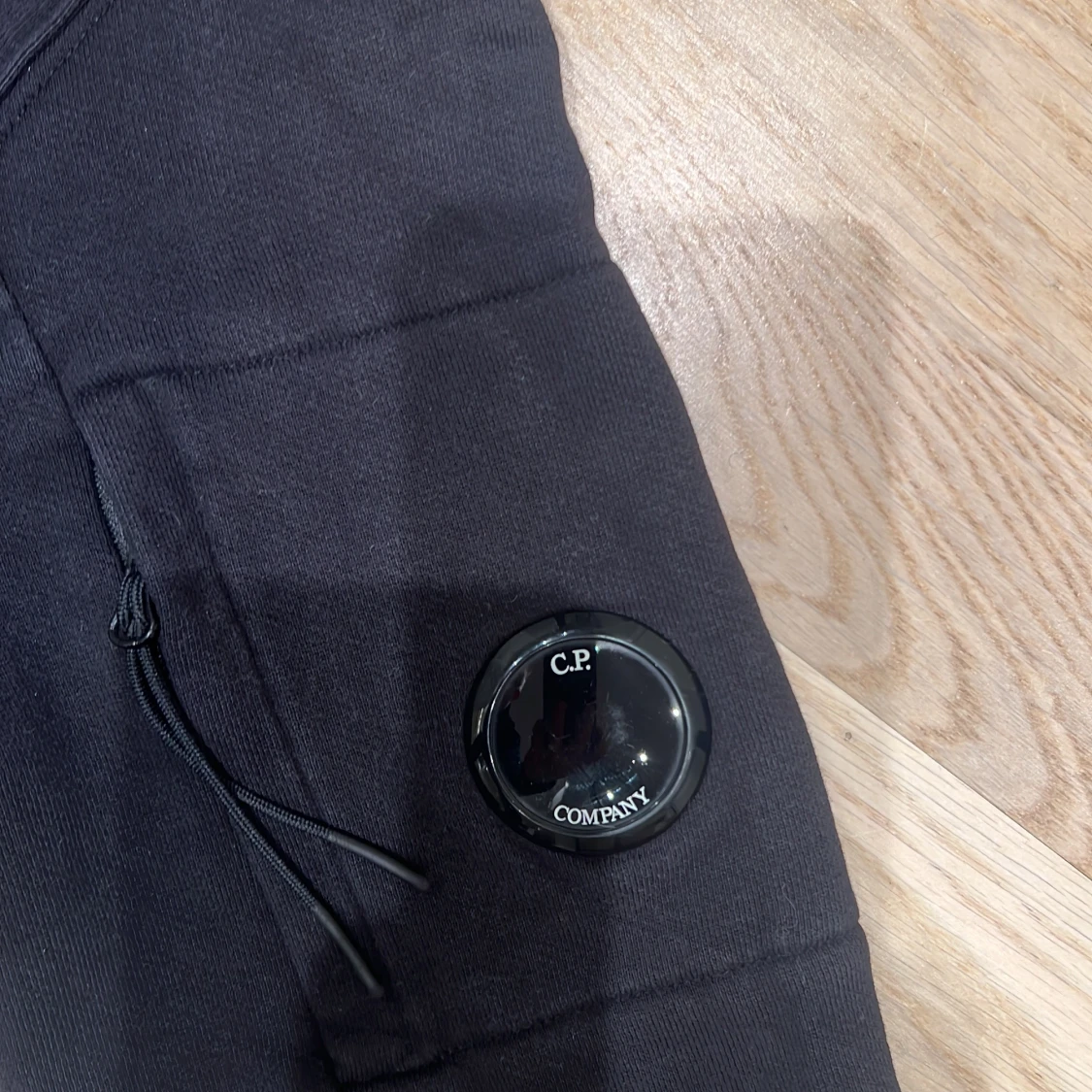 Snygg svart hoodie från C.P. Company med en cool detalj på ärmen. Perfekt för en stilren look. Den har en klassisk huva med dragsko och en praktisk ficka framtill. Frågor eller funderingar är det bara att slå en pling. Priset är ej hugget i sten!