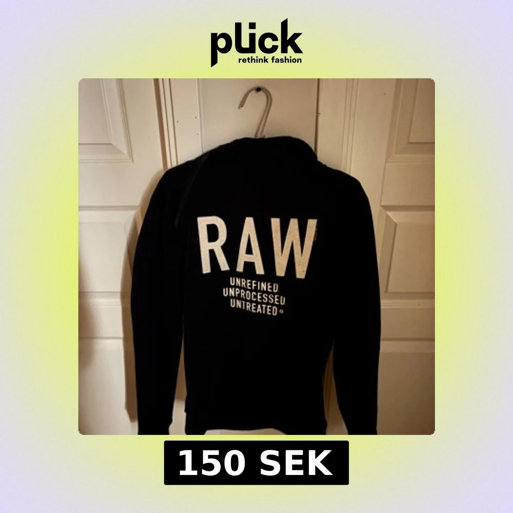 Säljer en svart hoodie från G-Star RAW med stor vit RAW-text på ryggen och dragkedja längs axeln. Tröjan har huva och är tillverkad i mjukt material, perfekt för en avslappnad stil. Lite unik men ändå snygg. Pris kan diskuteras.