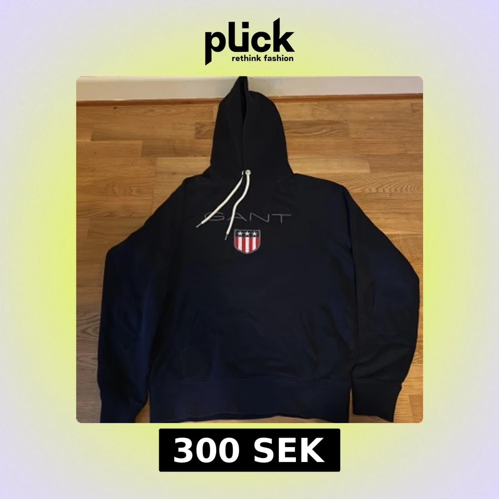 Säljer en snygg svart hoodie från Gant med vit dragsko och ett stilrent emblem på bröstet. Perfekt för en avslappnad stil. Hör av dig vid intresse!