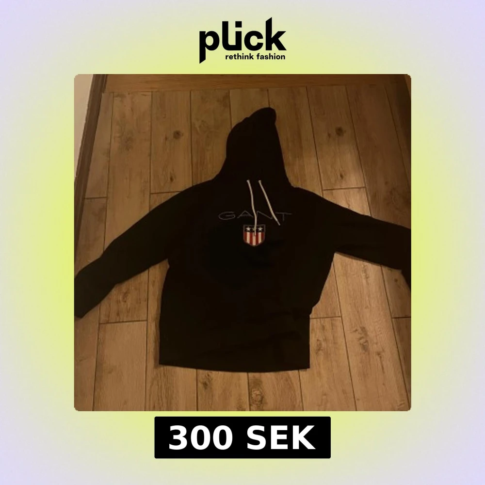 Säljer en svart hoodie från GANT med en stor logga och ett sköldmärke på bröstet. Hoodien har en klassisk design med dragsko i huvan. Perfekt för en avslappnad stil.