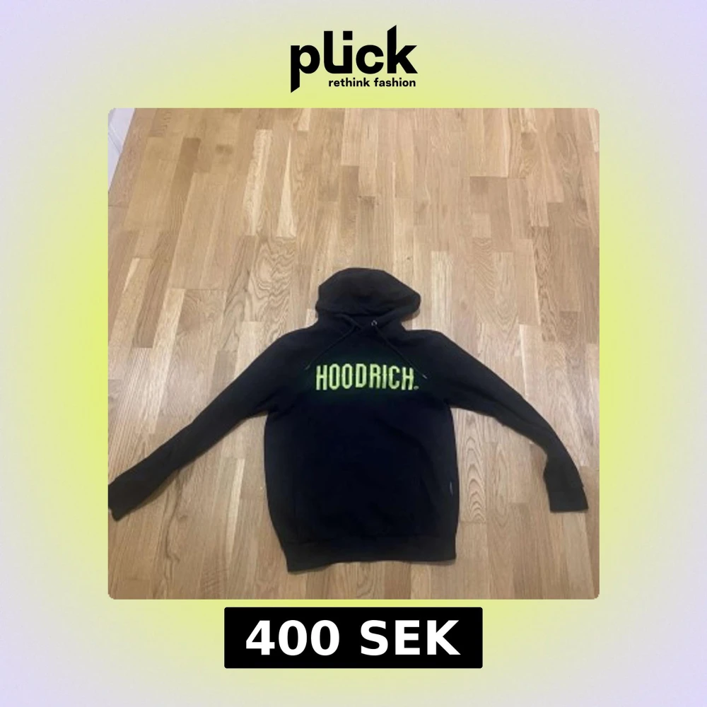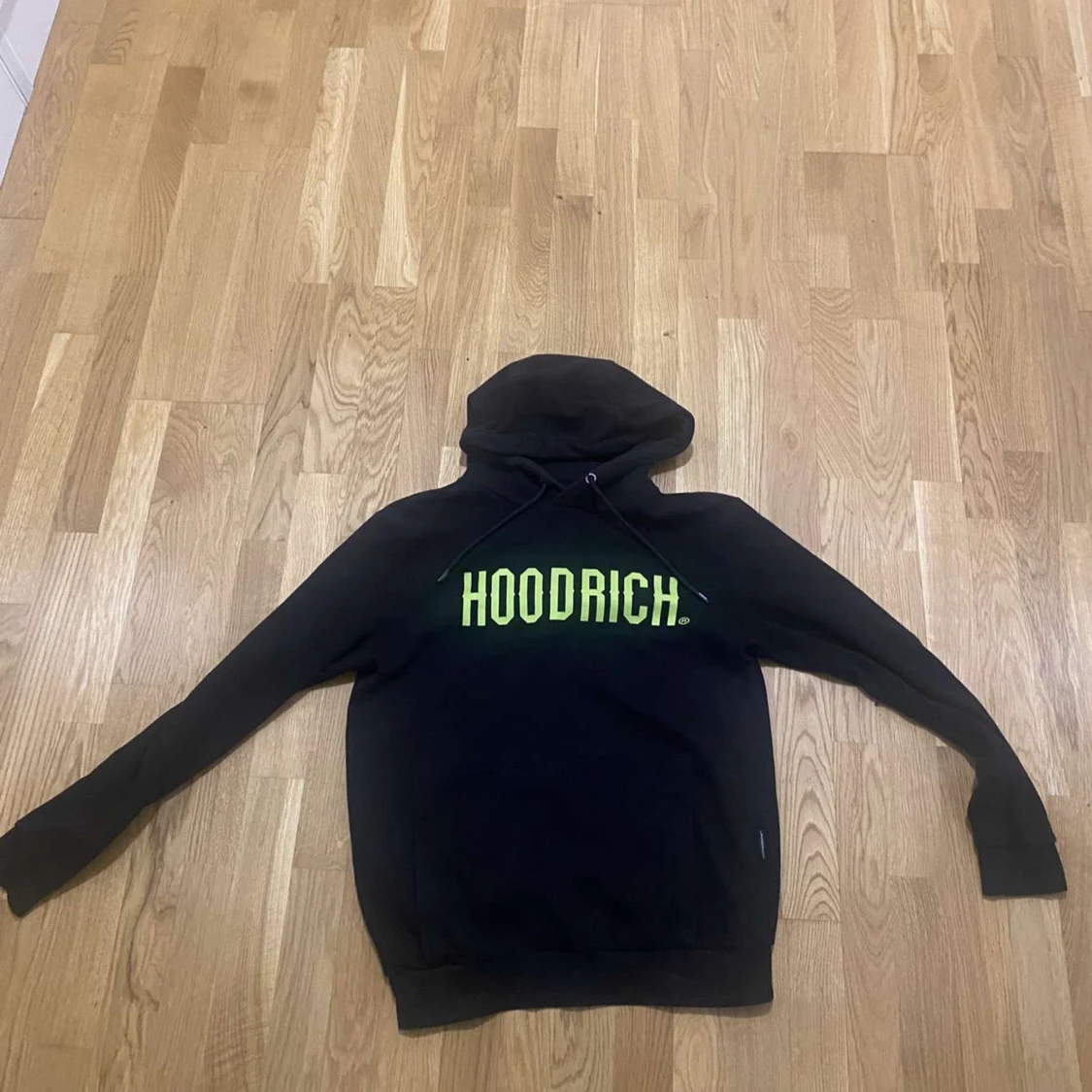 Svart hoodie från Hoodrich med stor neongul logga på bröstet. Tröjan har huva med snörning och långa ärmar. Perfekt för dig som gillar streetwear och vill sticka ut med en fet logga.