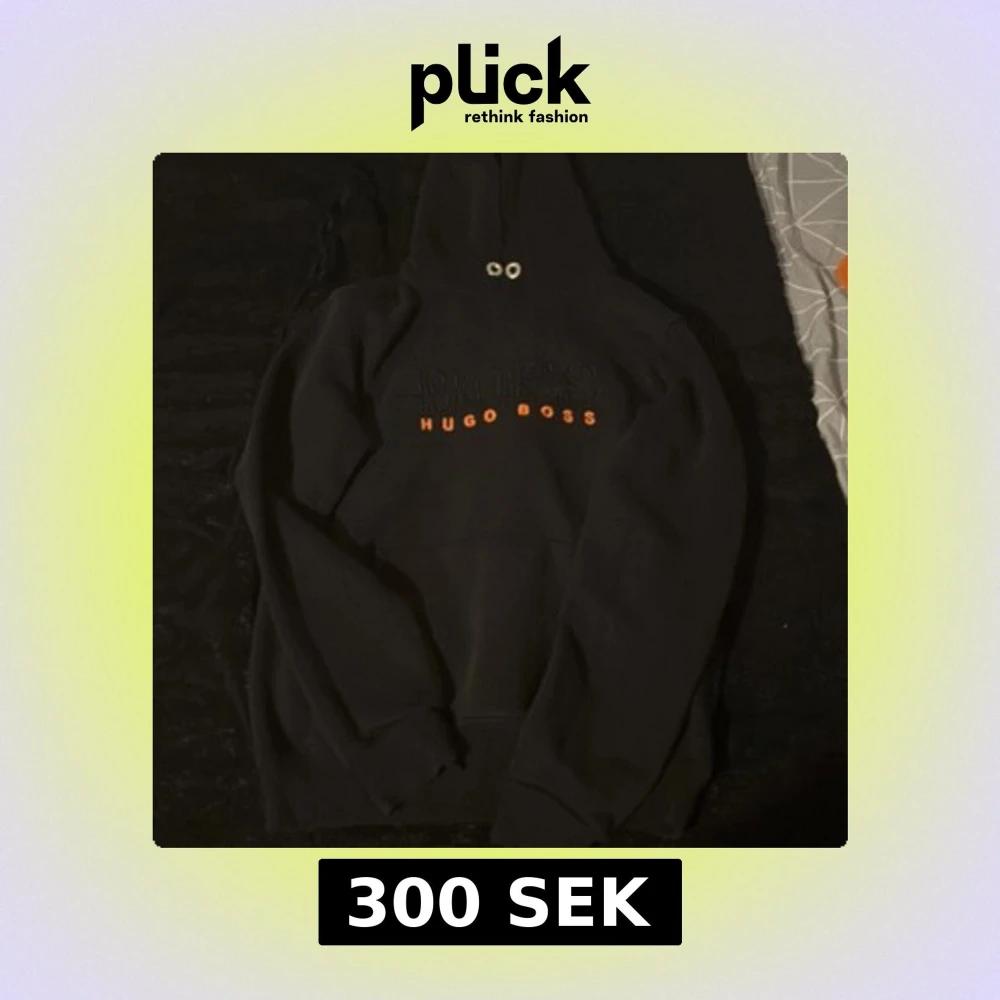 Svart hoodie från Hugo Boss med broderad logga i svart och orange text på bröstet. Klassisk huva med snörning och magficka framtill. Perfekt för dig som gillar stilrena och snygga streetwear-plagg.