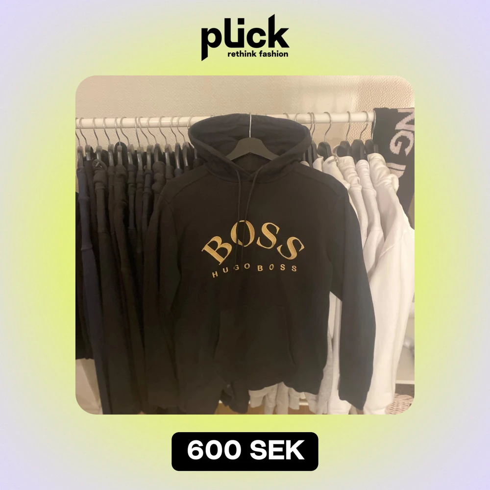 Snygg svart hoodie från Hugo Boss med stor guldfärgad logga på bröstet. Tröjan har en klassisk design med huva och dragsko samt en praktisk magficka. Perfekt för en stilren och bekväm look.