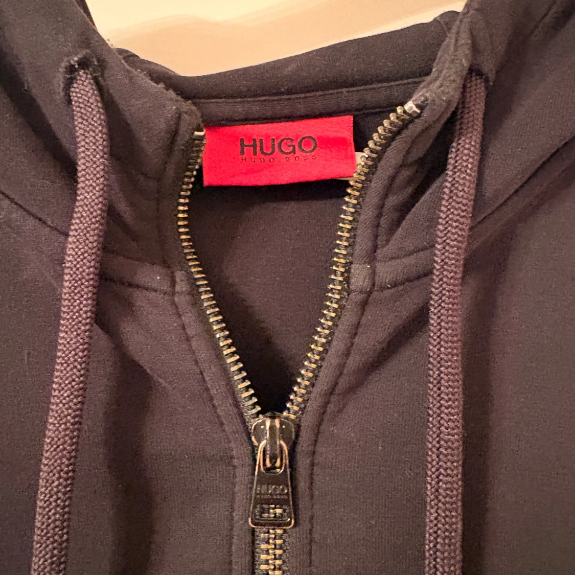 Svart hoodie från Hugo Boss med dragkedja och huva.
